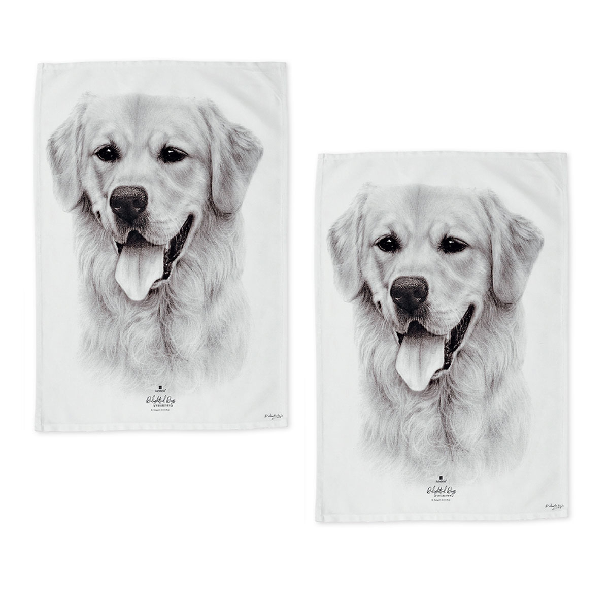 Set of 2 Delightful Dogs Cotton Kitchen Tea Towels 50 x 70 cm Golden Retriever