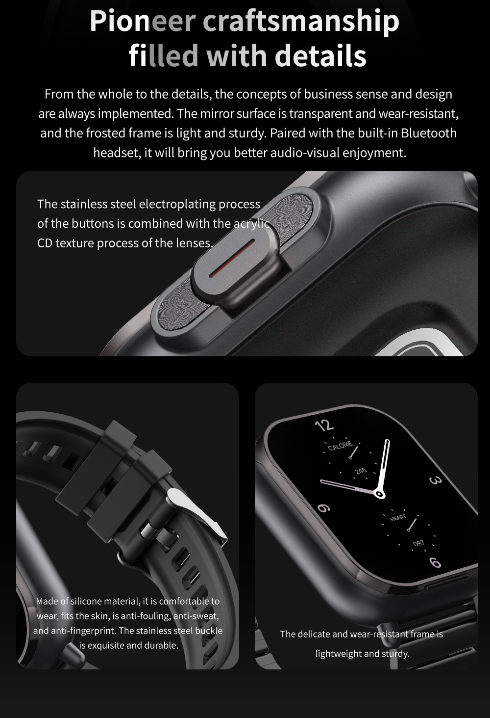 • Durable ABS+PC case with electroplating, comfortable Steel Belt.