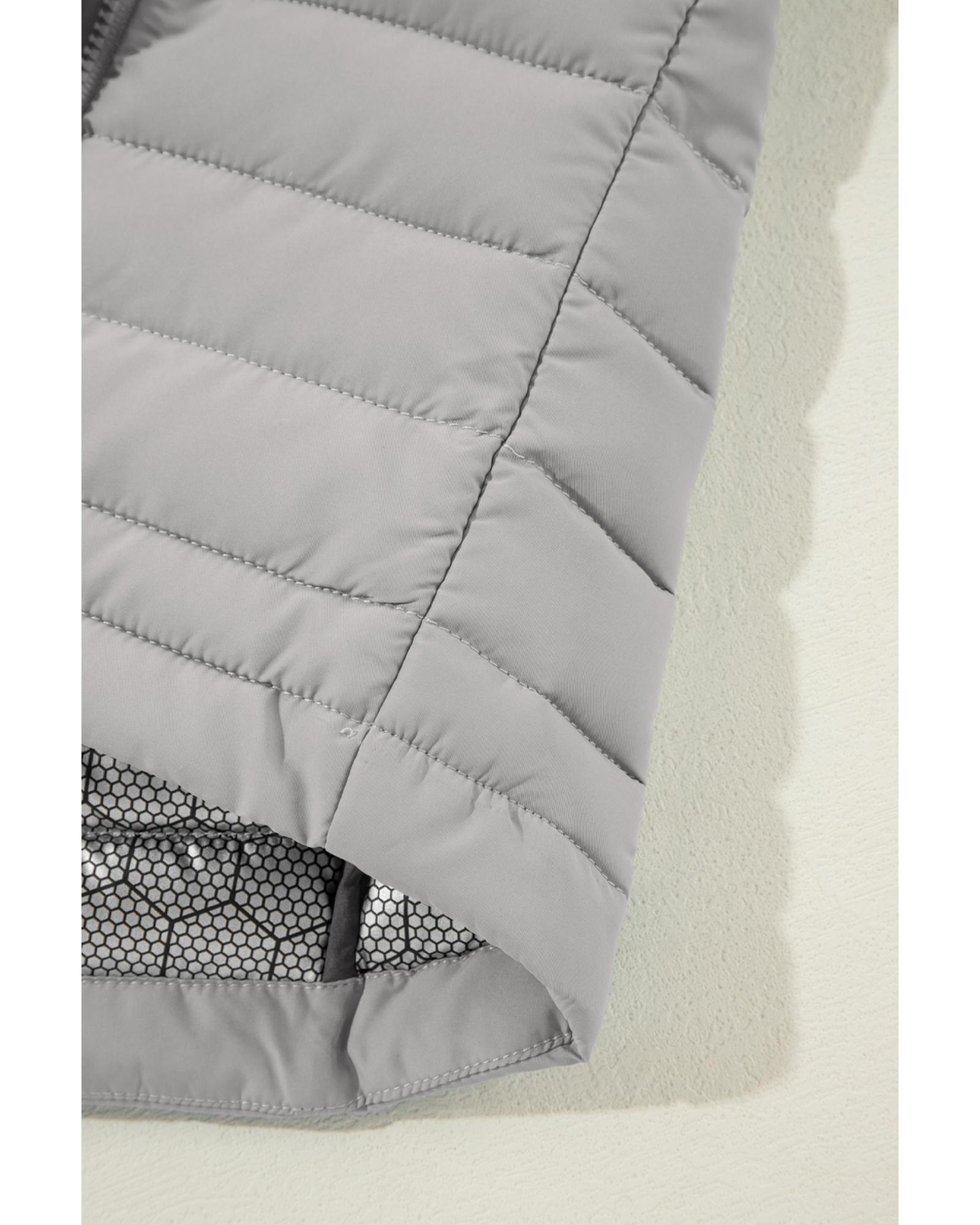 Silvery Plush Collared Quilted Zipped Puffer Vest - XL