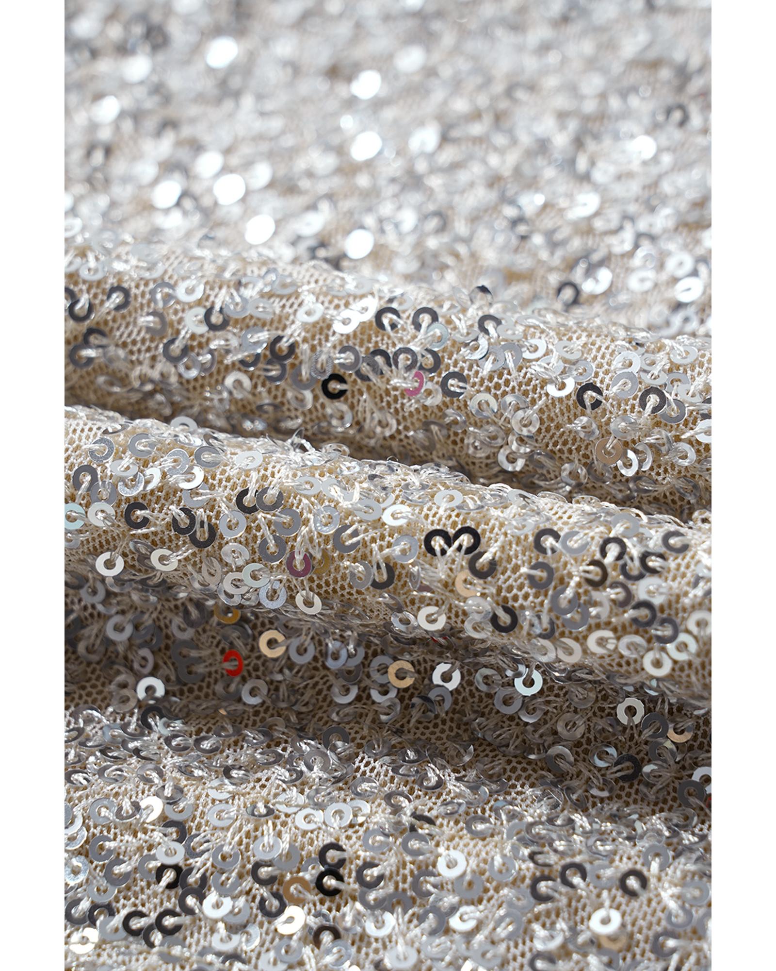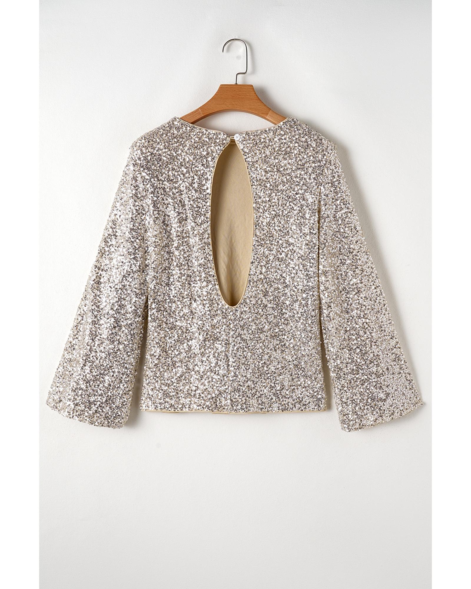 Silvery Sequin Puff Sleeve Cutout Back Blouse – XL