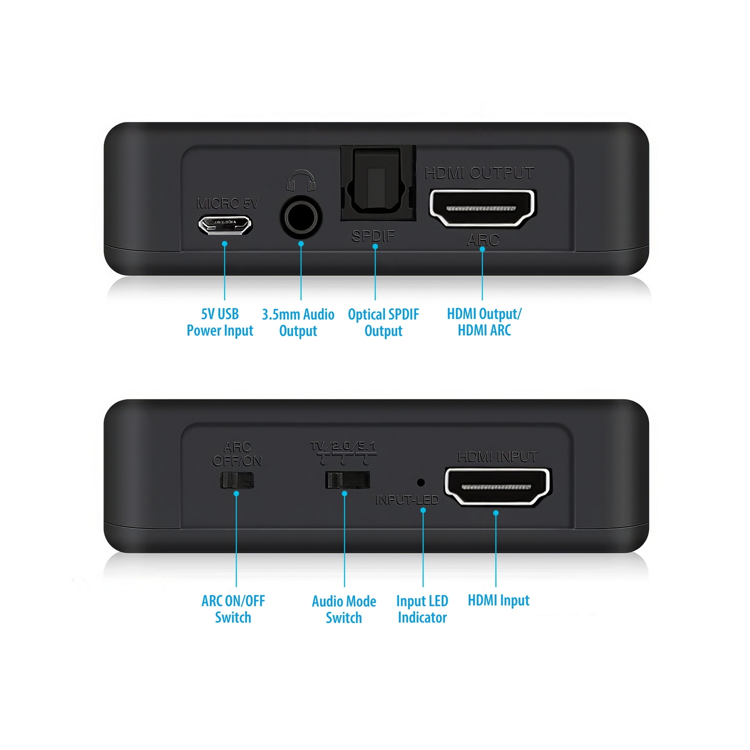 • Supports HDMI ARC, allowing direct audio extraction from ARC-enabled TV