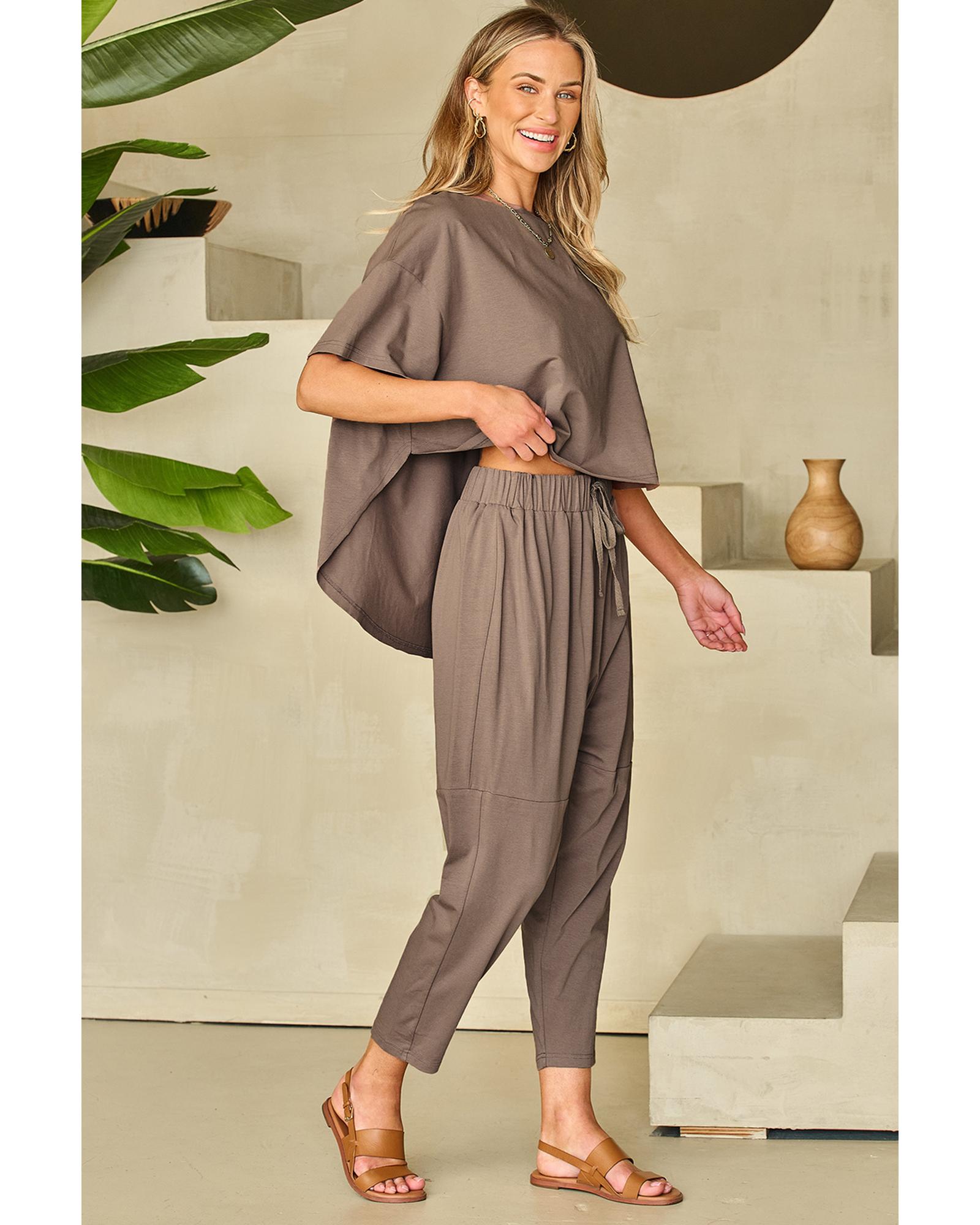 Simply Taupe High Low Boxy Fit Tee and Crop Pants Set – L