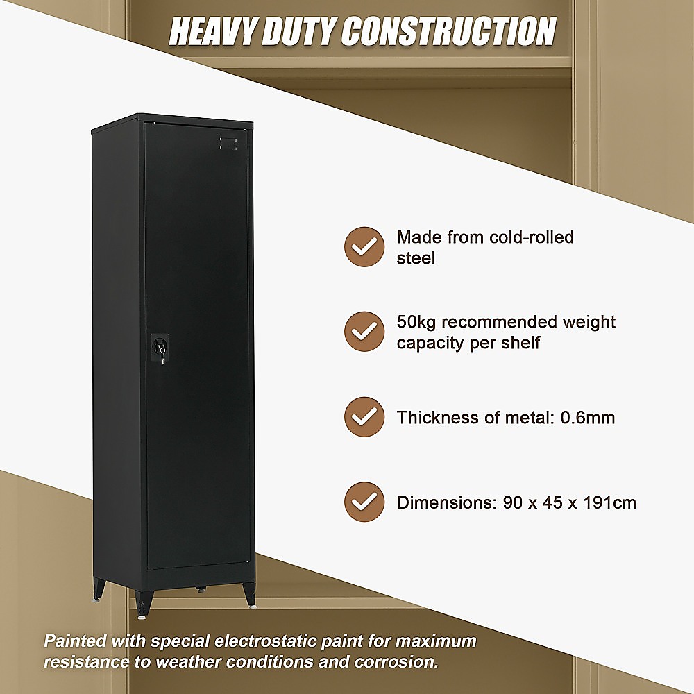 Single-Door Metal Tall Cabinet Shelf Storage for Home Office Gym