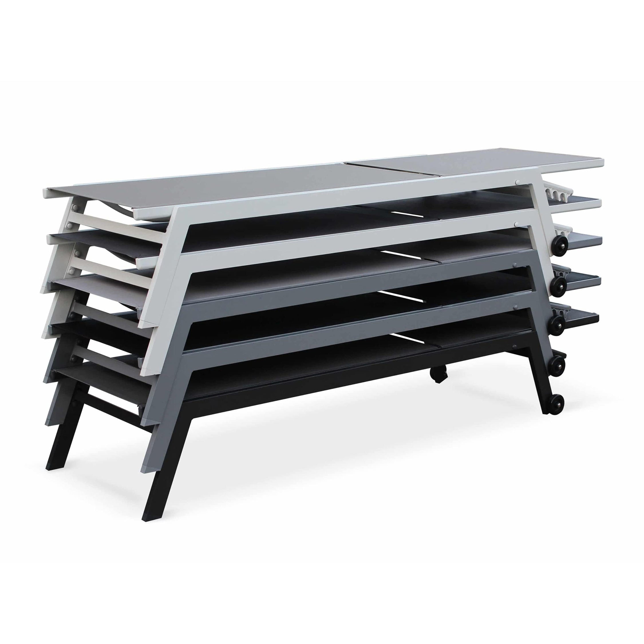 The adjustable backrest offers five reclining positions to suit your relaxation needs—whether you prefer to sit upright or lay completely flat. Equipped with smooth wheels, the loungers can be easily repositioned to follow the sun. Lightweight yet sturdy, these loungers are stackable, making storage convenient and hassle-free.