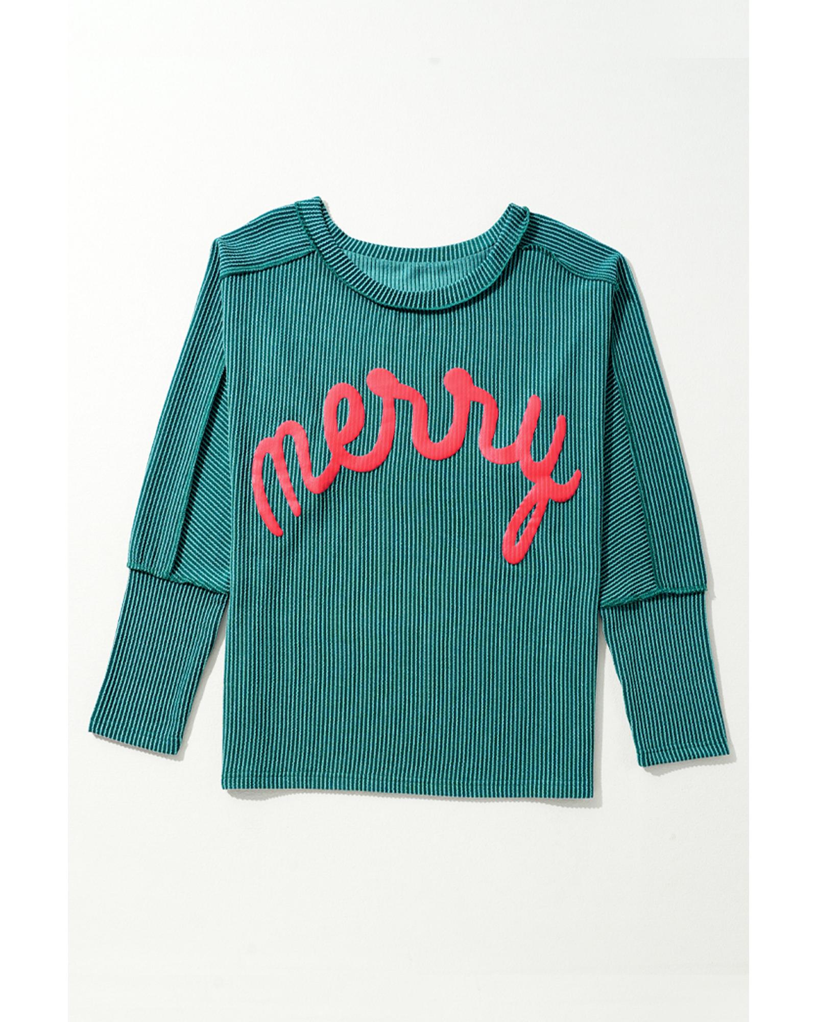 Skobeloff Merry Graphic Corded Batwing Sleeve Knit Top – S