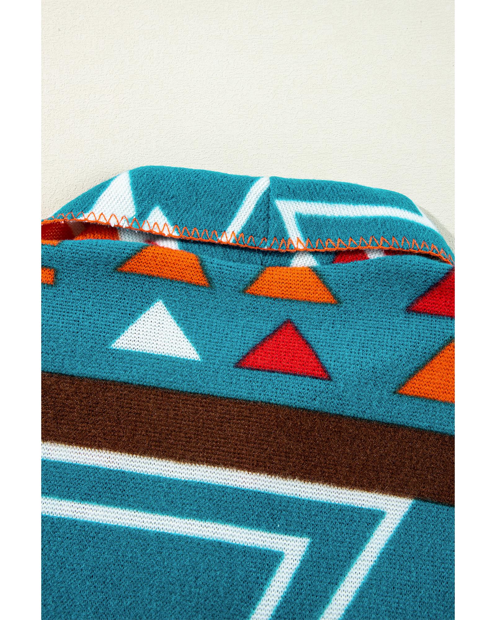 - Sky Blue Aztec Printed Lapel Bell Sleeve Jacket
