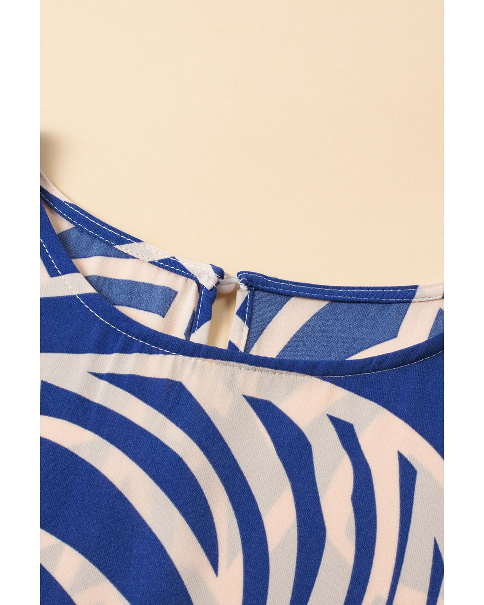 • Sky Blue Boho Printed Short Sleeve Flare Tiered Dress