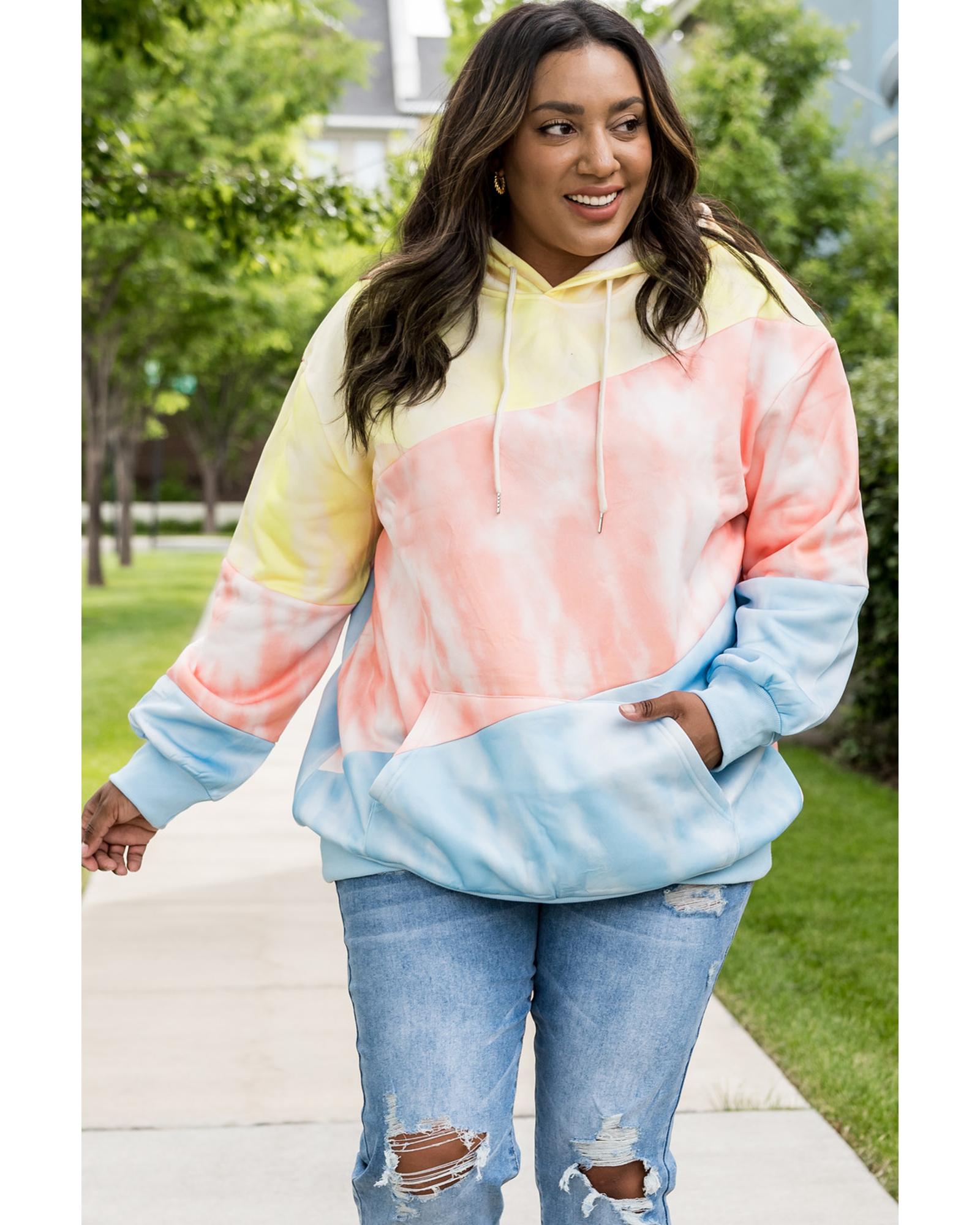 • Plus size hoodie with a colorblock design in sky blue