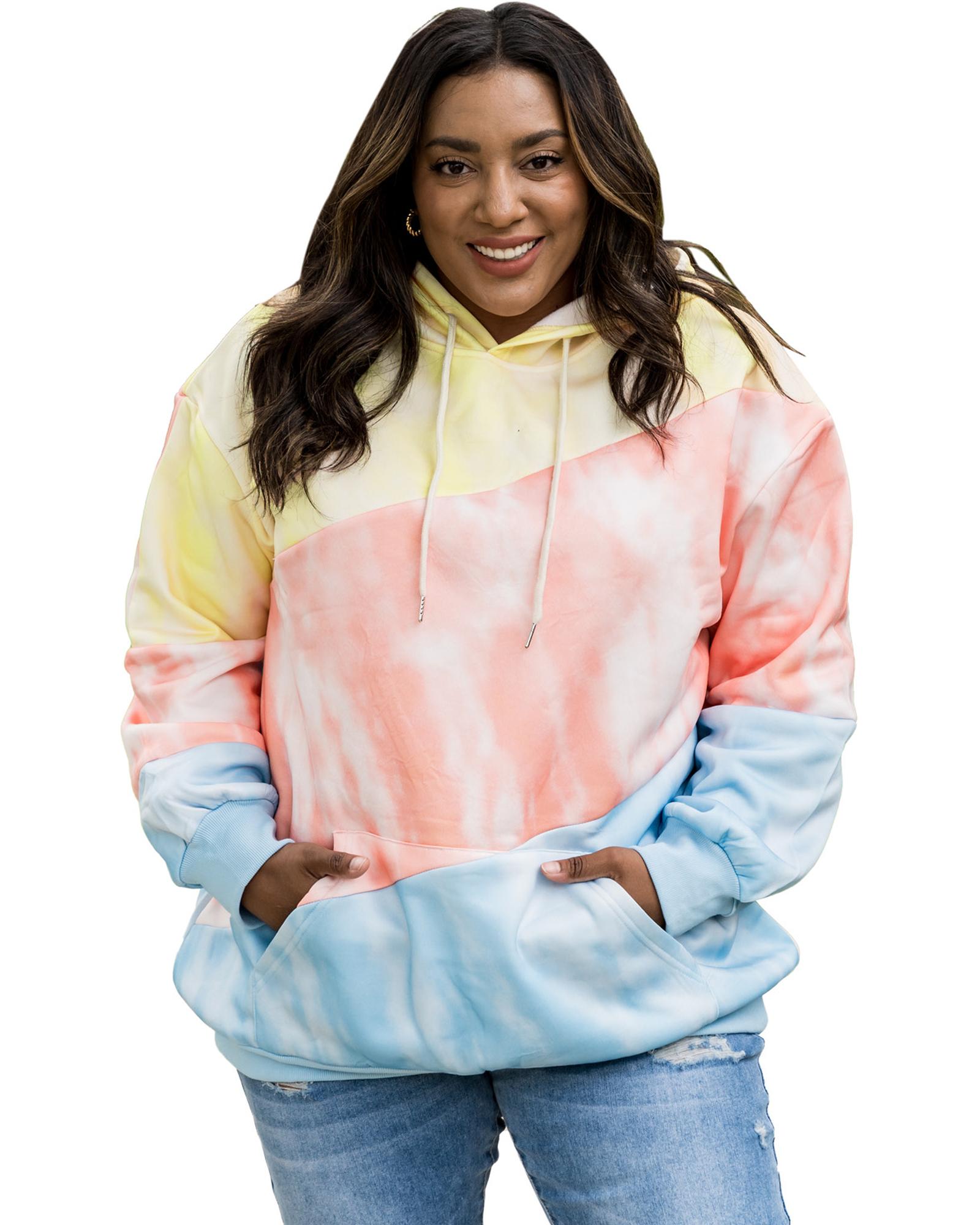 • Plus size hoodie with a colorblock design in sky blue