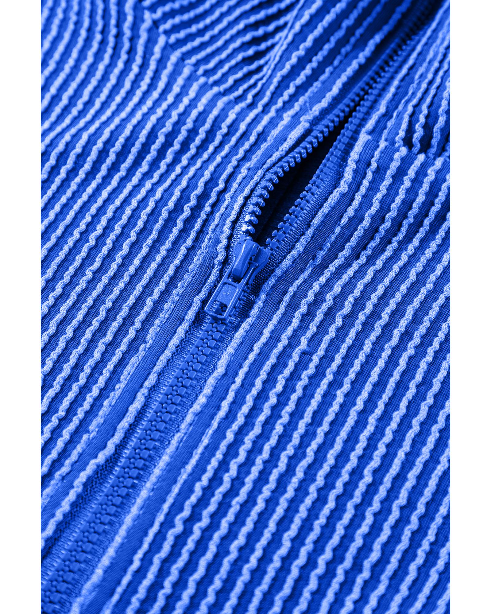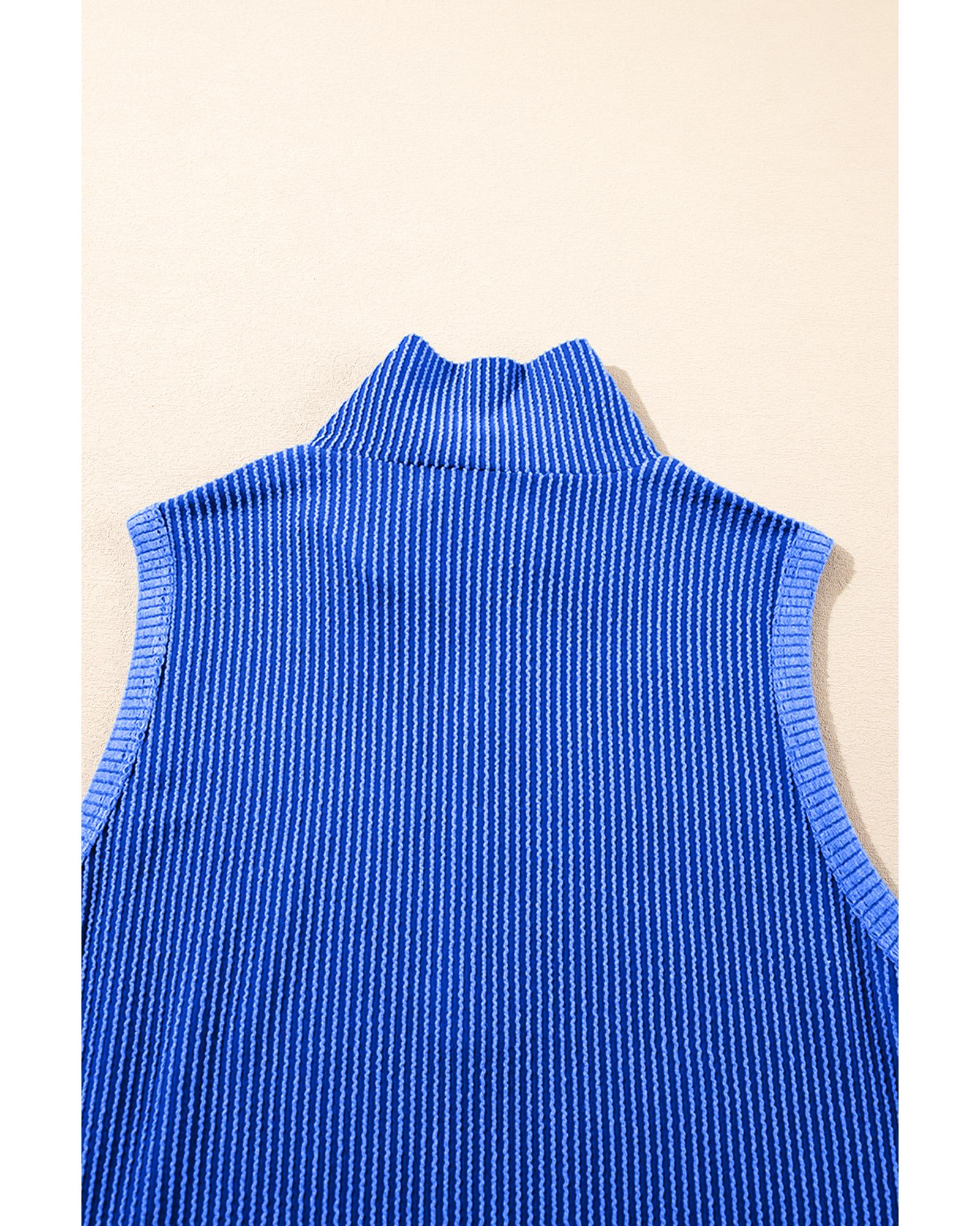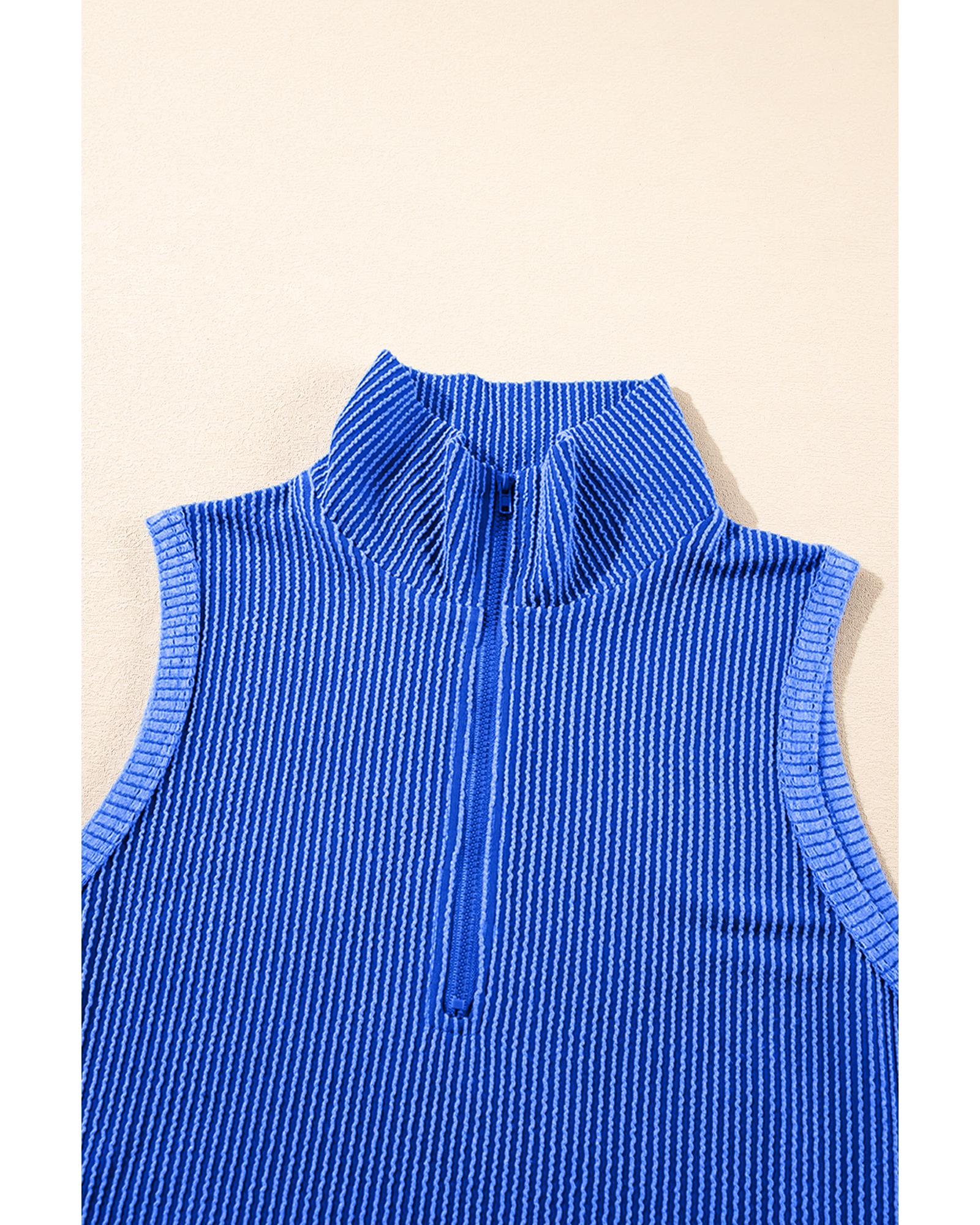 Sky Blue Corded Collared Half Zip Tank Top Two Piece Shorts Set – L