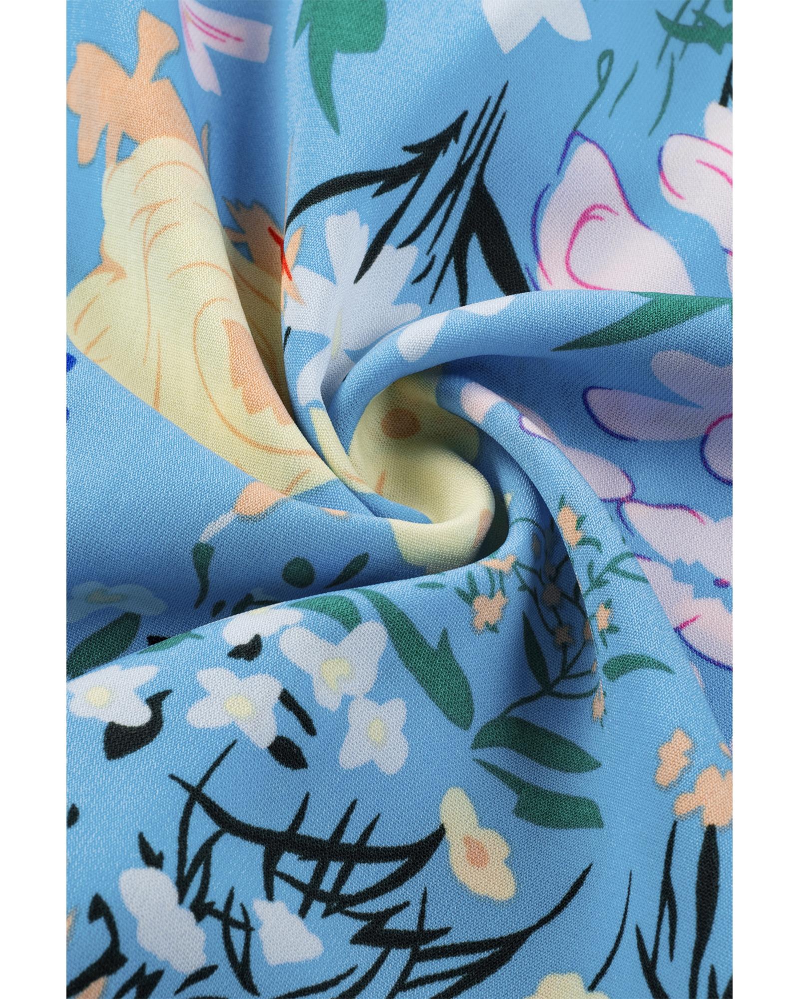Sky Blue Floral Flutter Sleeve V Neck Ruffled Dress – XL