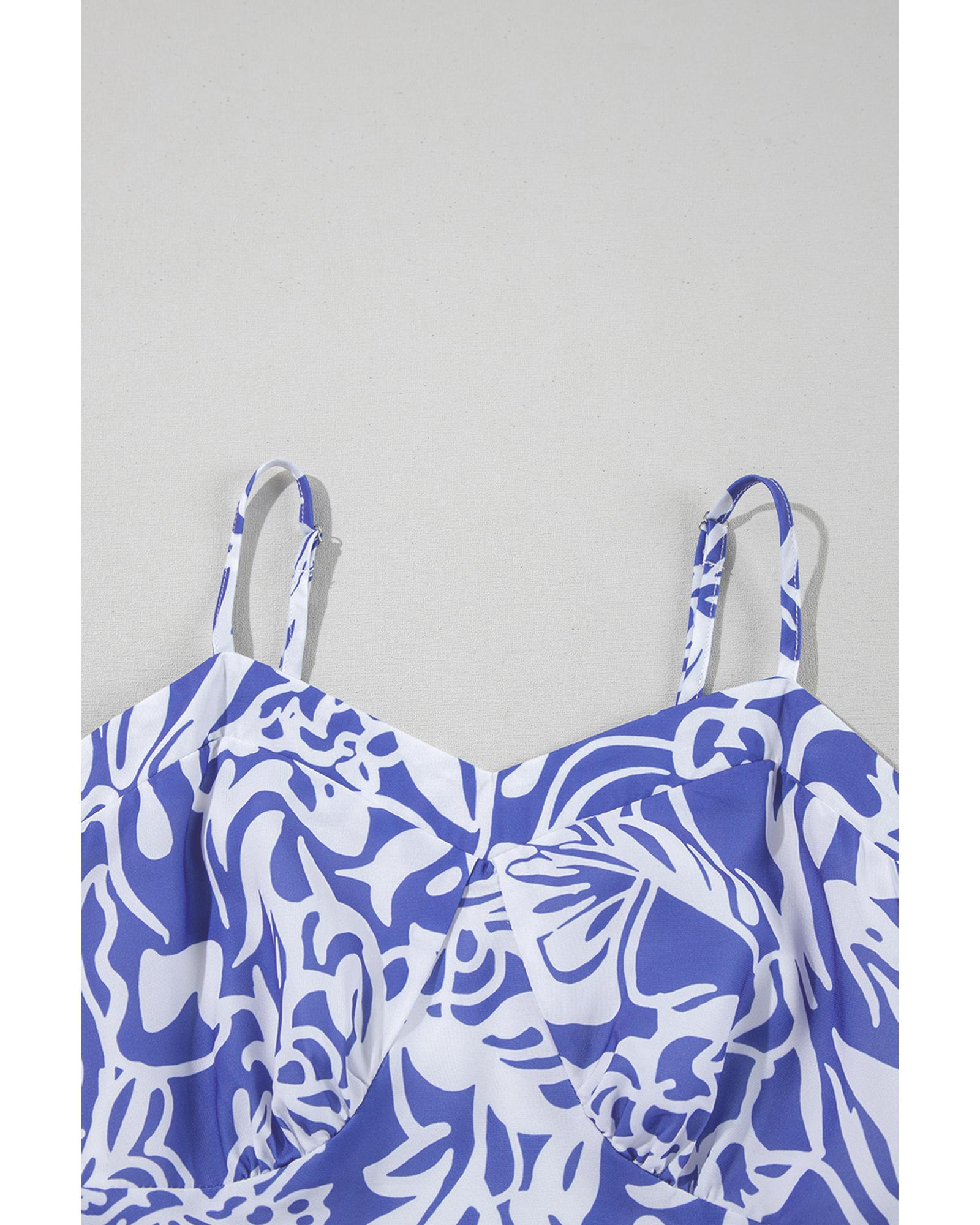 Sky Blue Floral Print Spaghetti Strap High Waist Maxi Dress – M