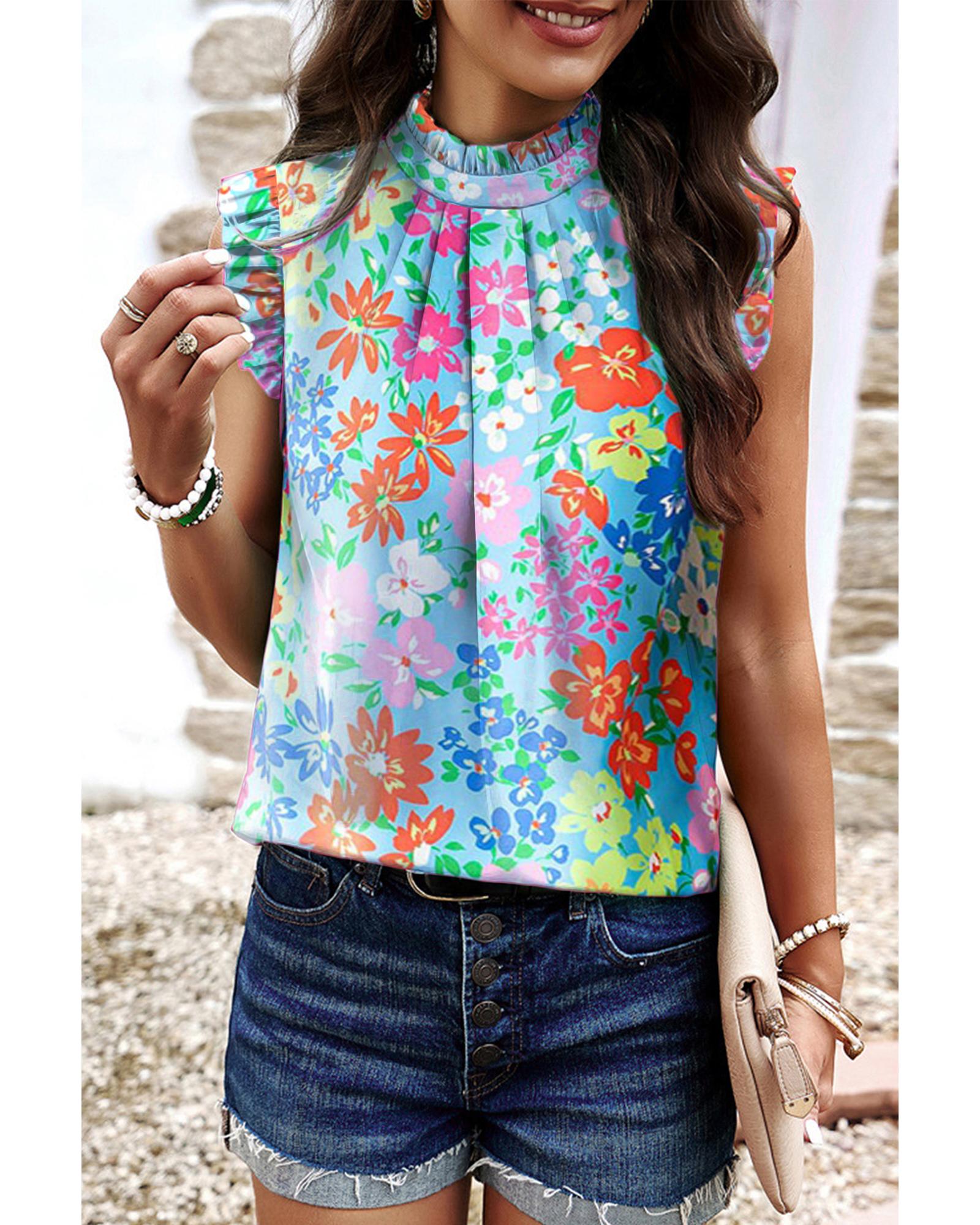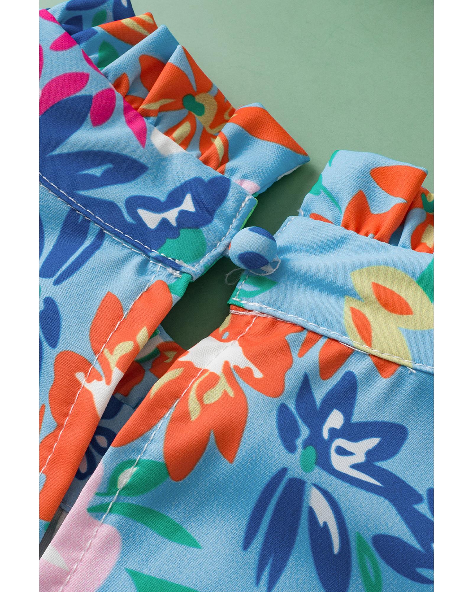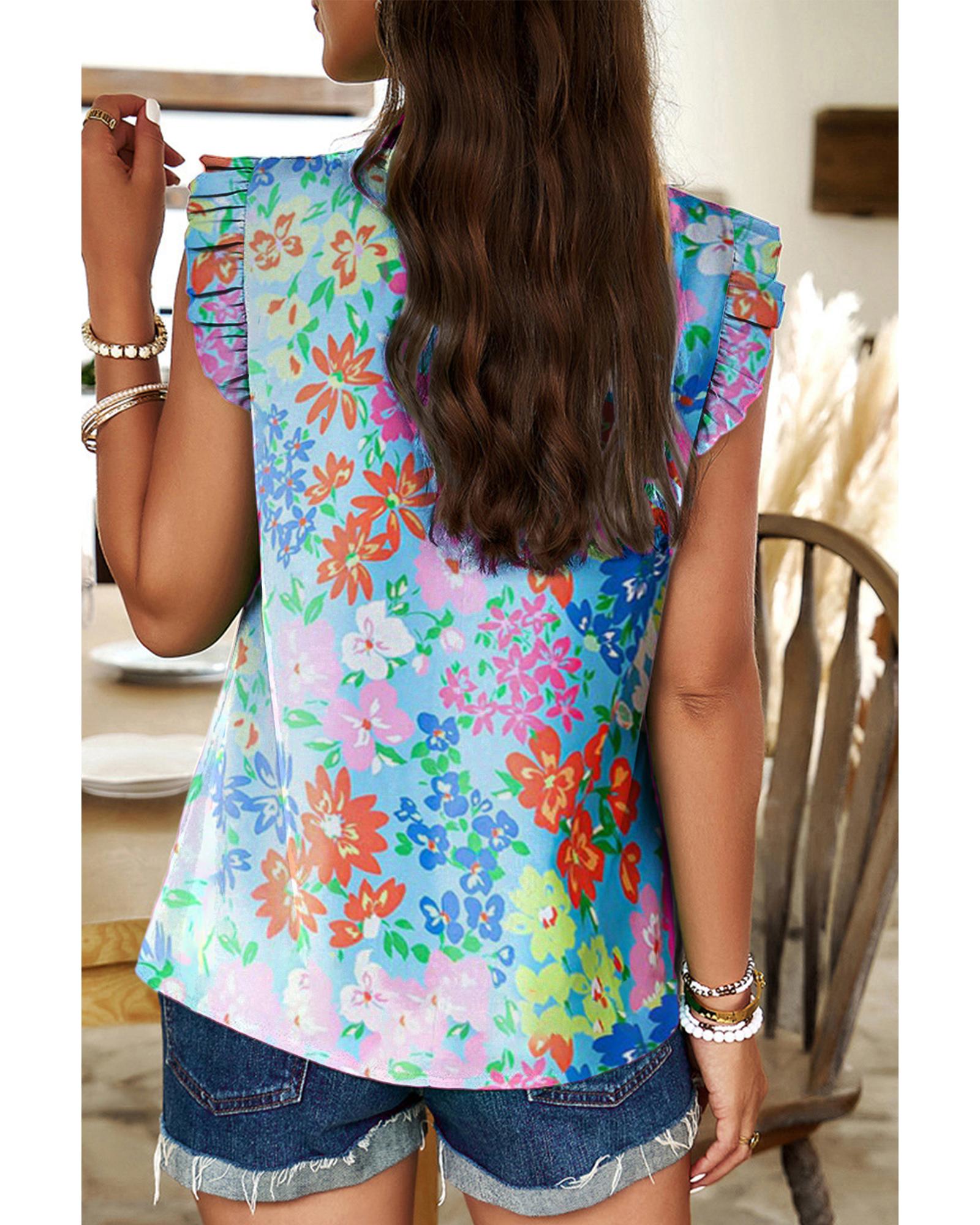• Sky Blue Frilled Collar Floral Vest