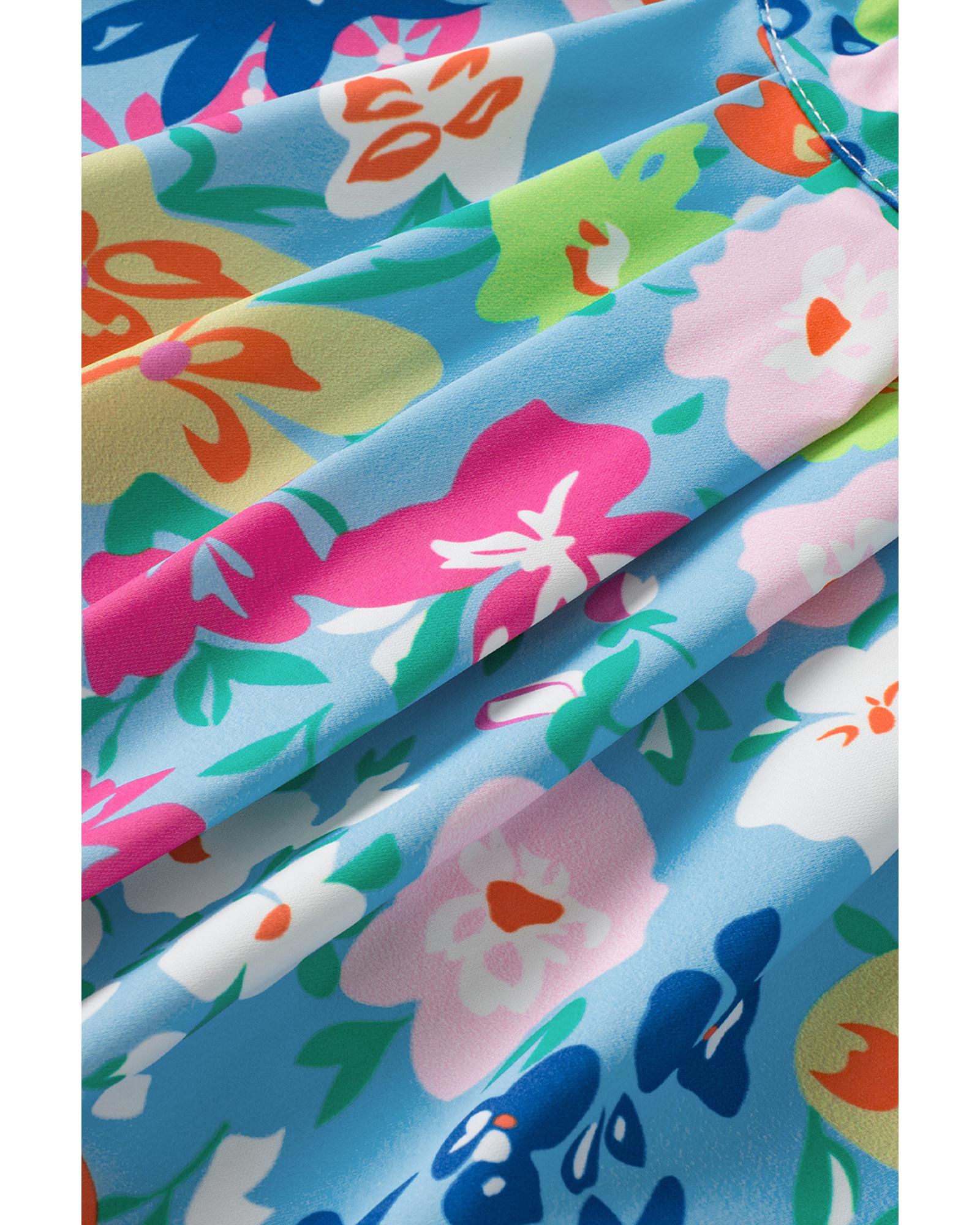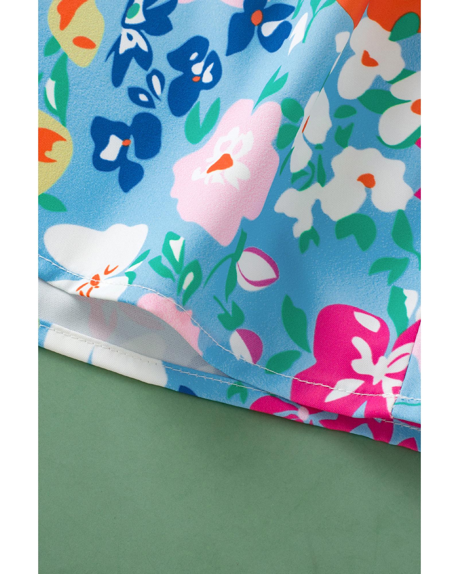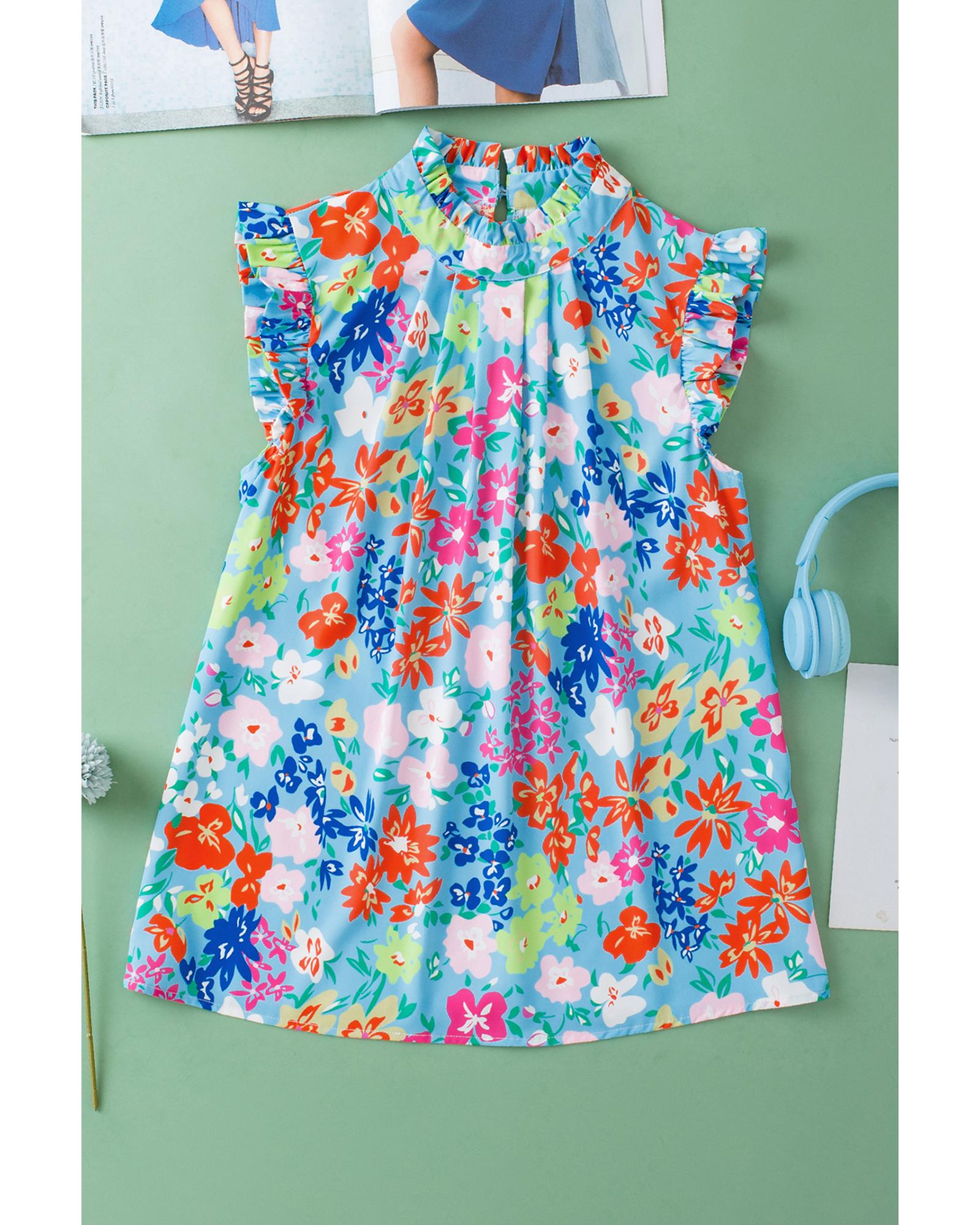 • Sky Blue Frilled Collar Floral Vest