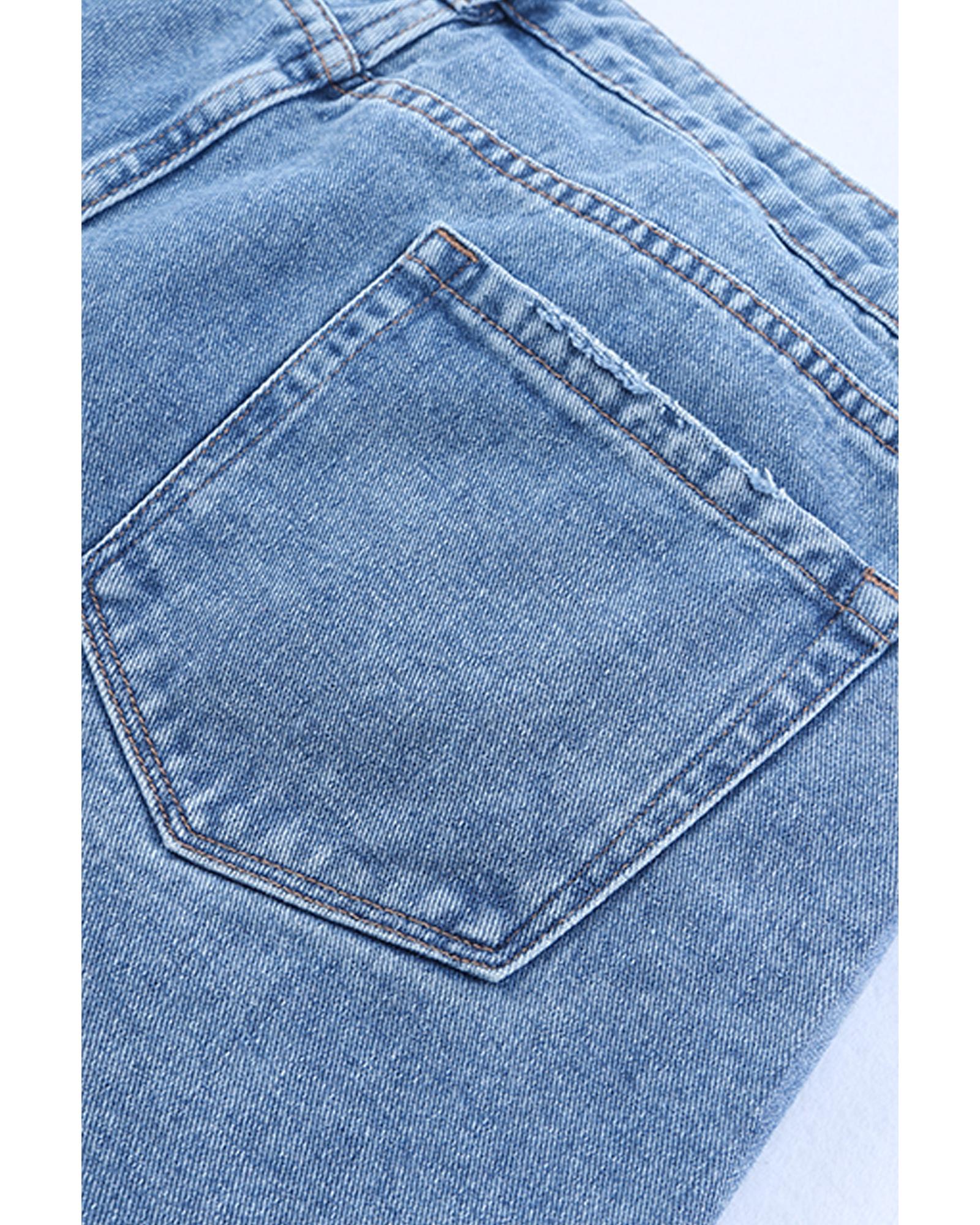 Sky Blue Sequin Pumpkin Patched Distressed Straight Leg Jeans - 8 US