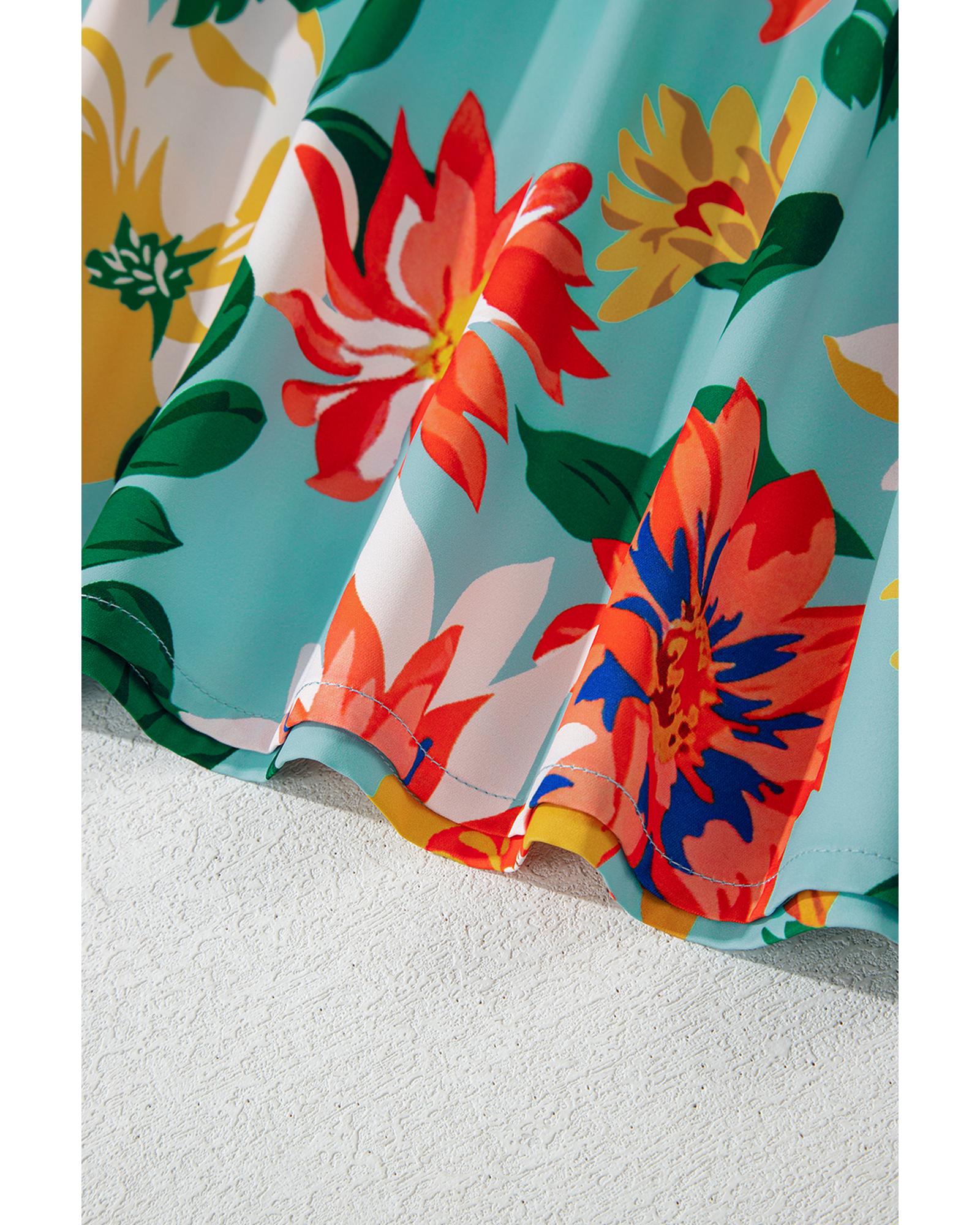 Sky Blue Plus Size Floral Print V Neck Batwing Sleeve Blouse - 4X Original price was: $60.99.Current price is: $32.99.