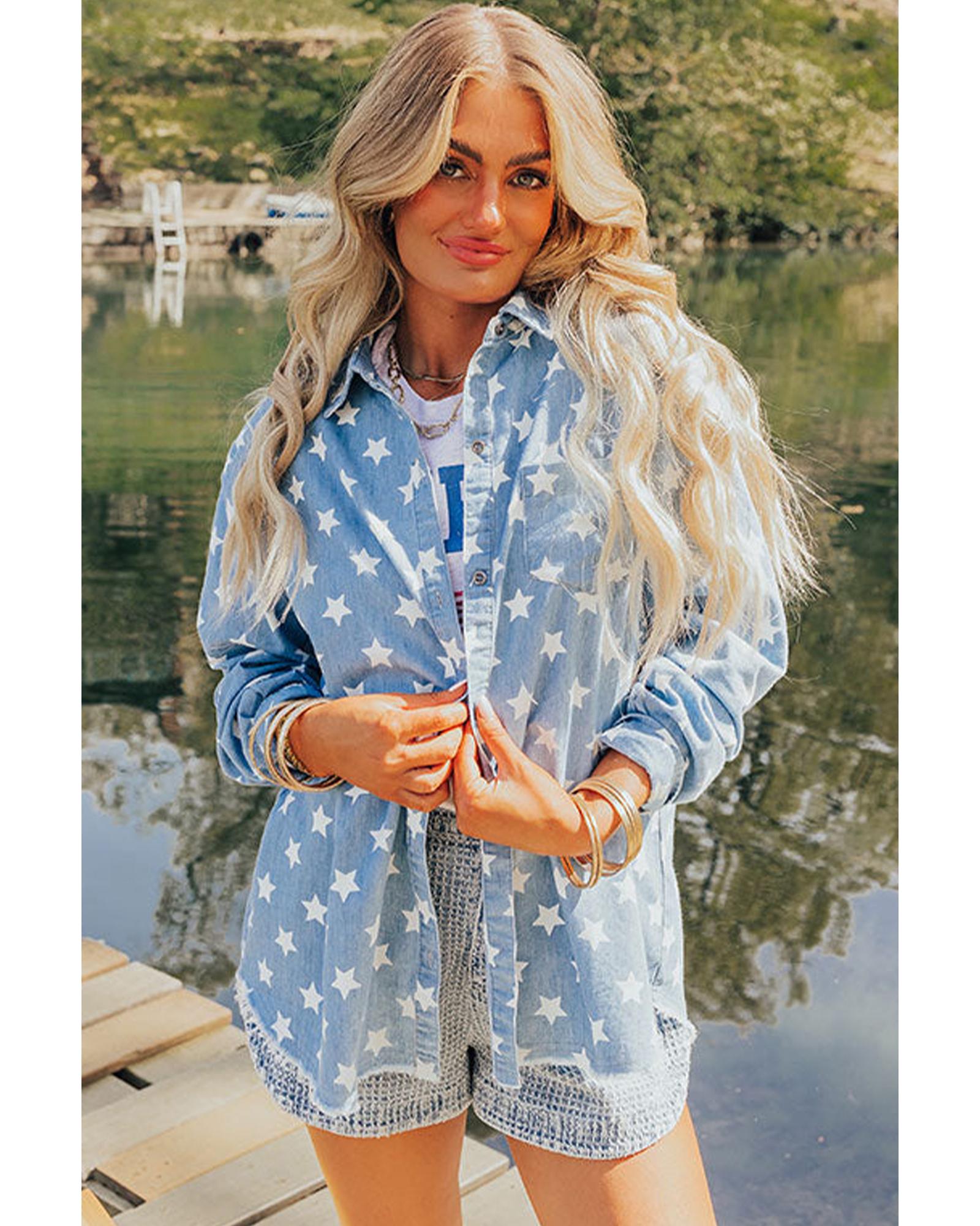 - Sky blue denim jacket with star print