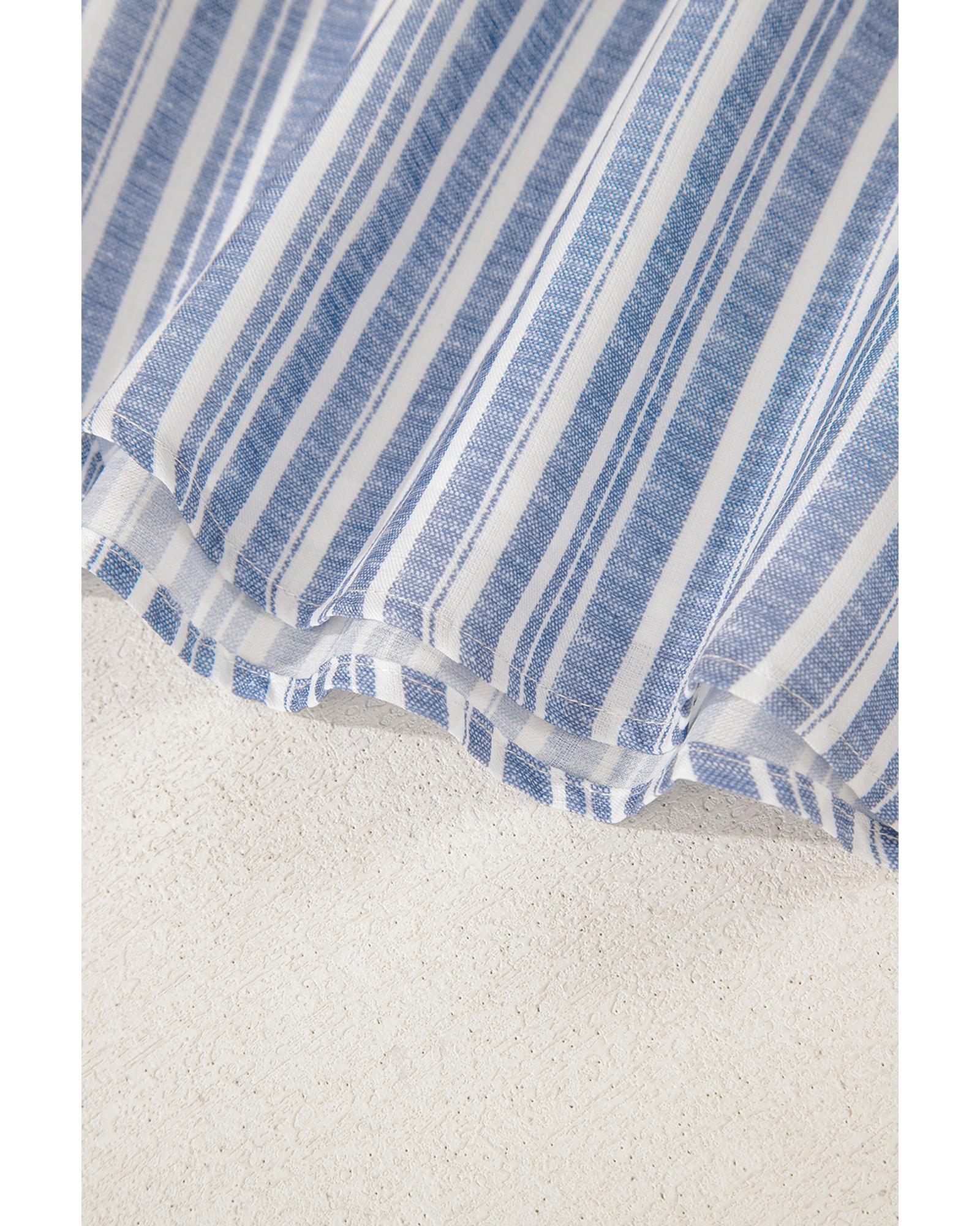 Sky Blue Stripe Buttoned Office Waistcoat Mini Skirt Set – XL
