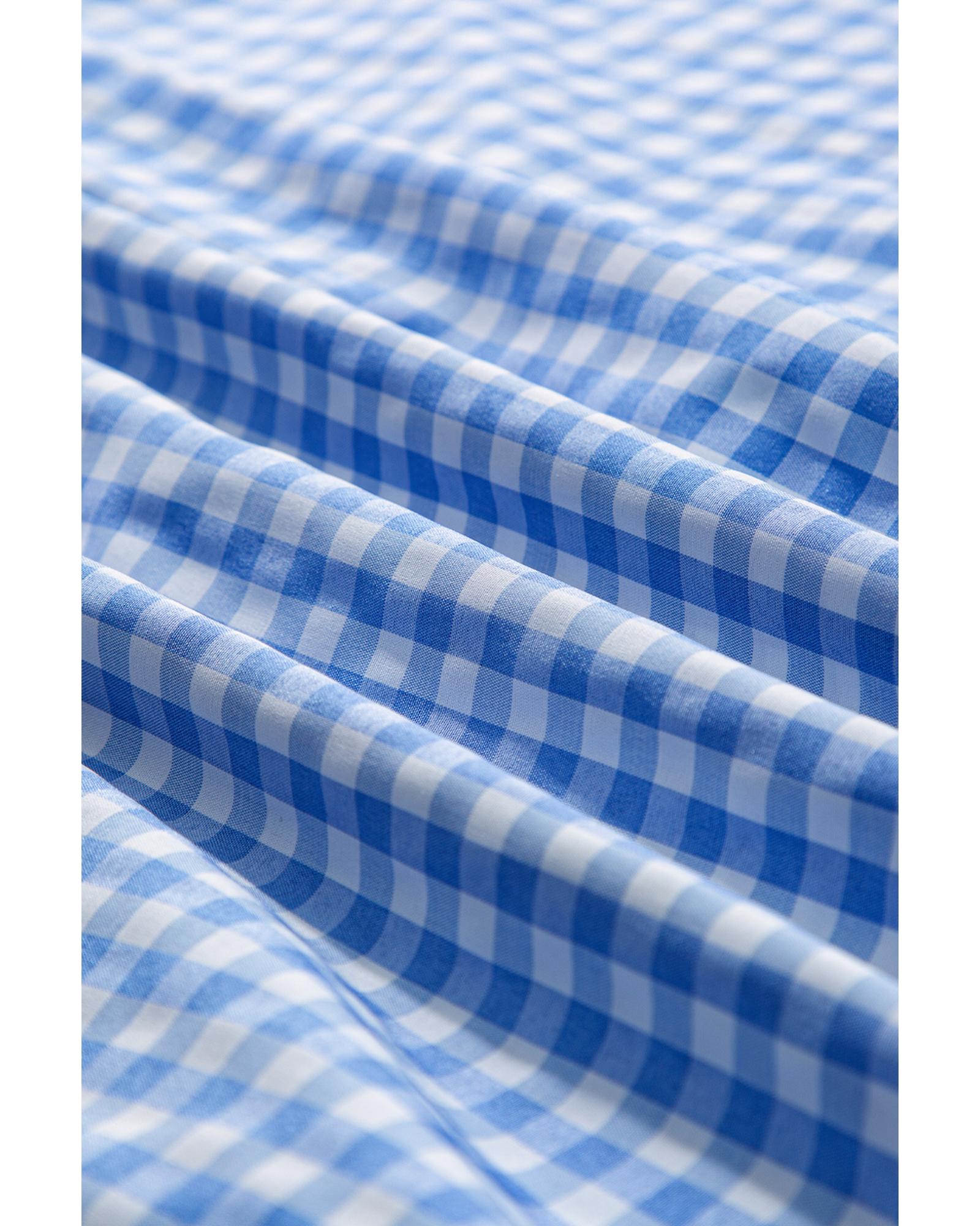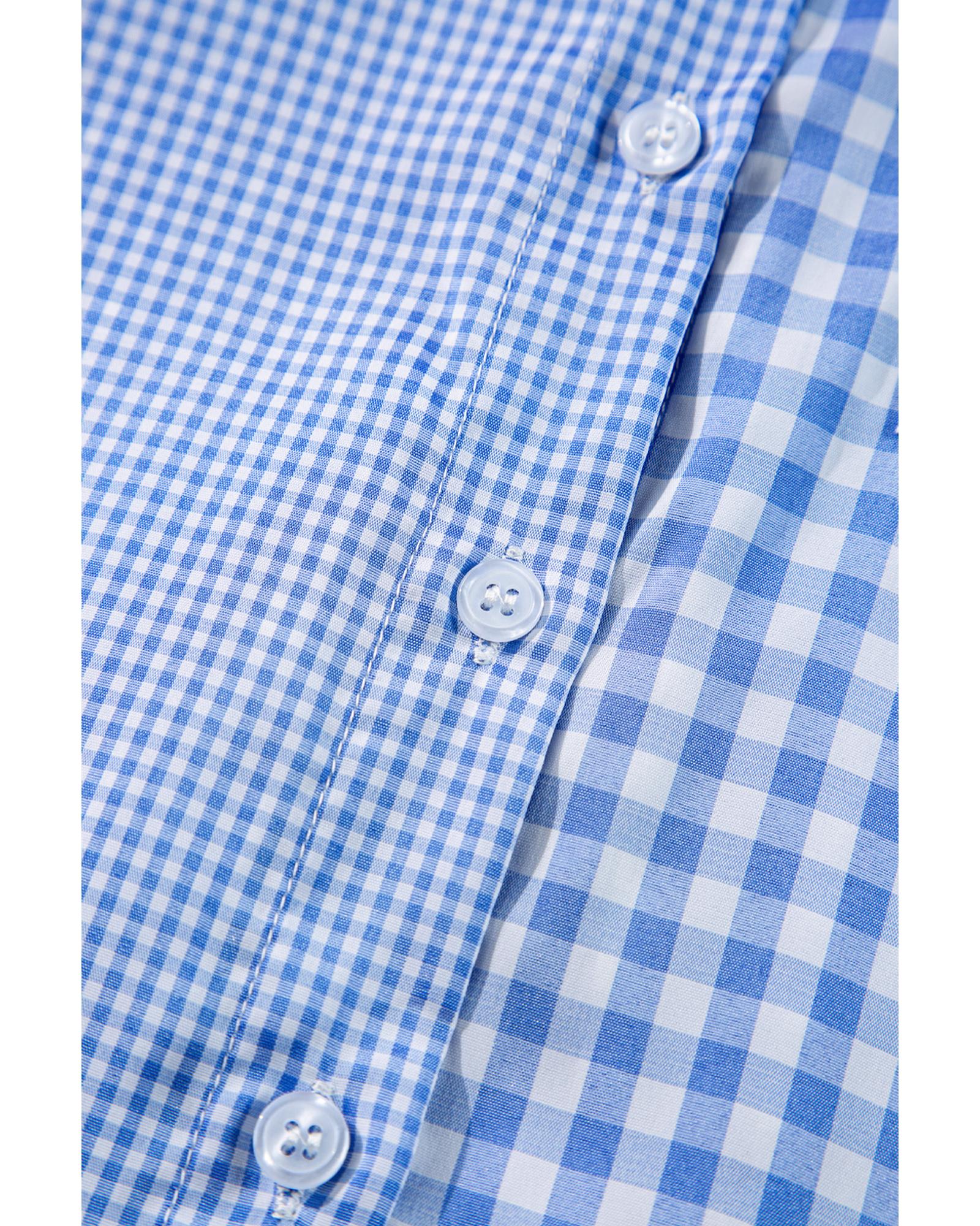 - Sky Blue Stripe Plaid Patchwork Button