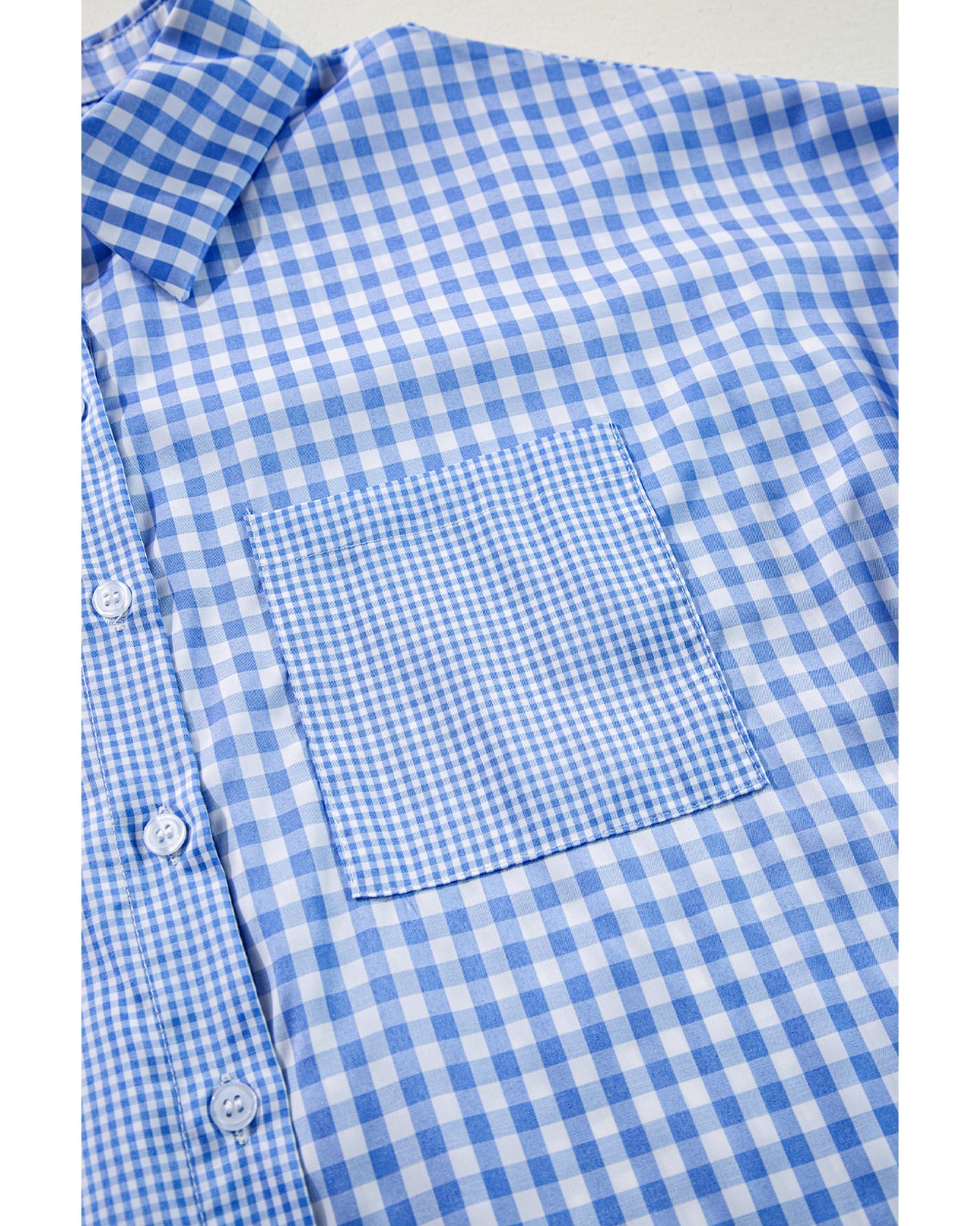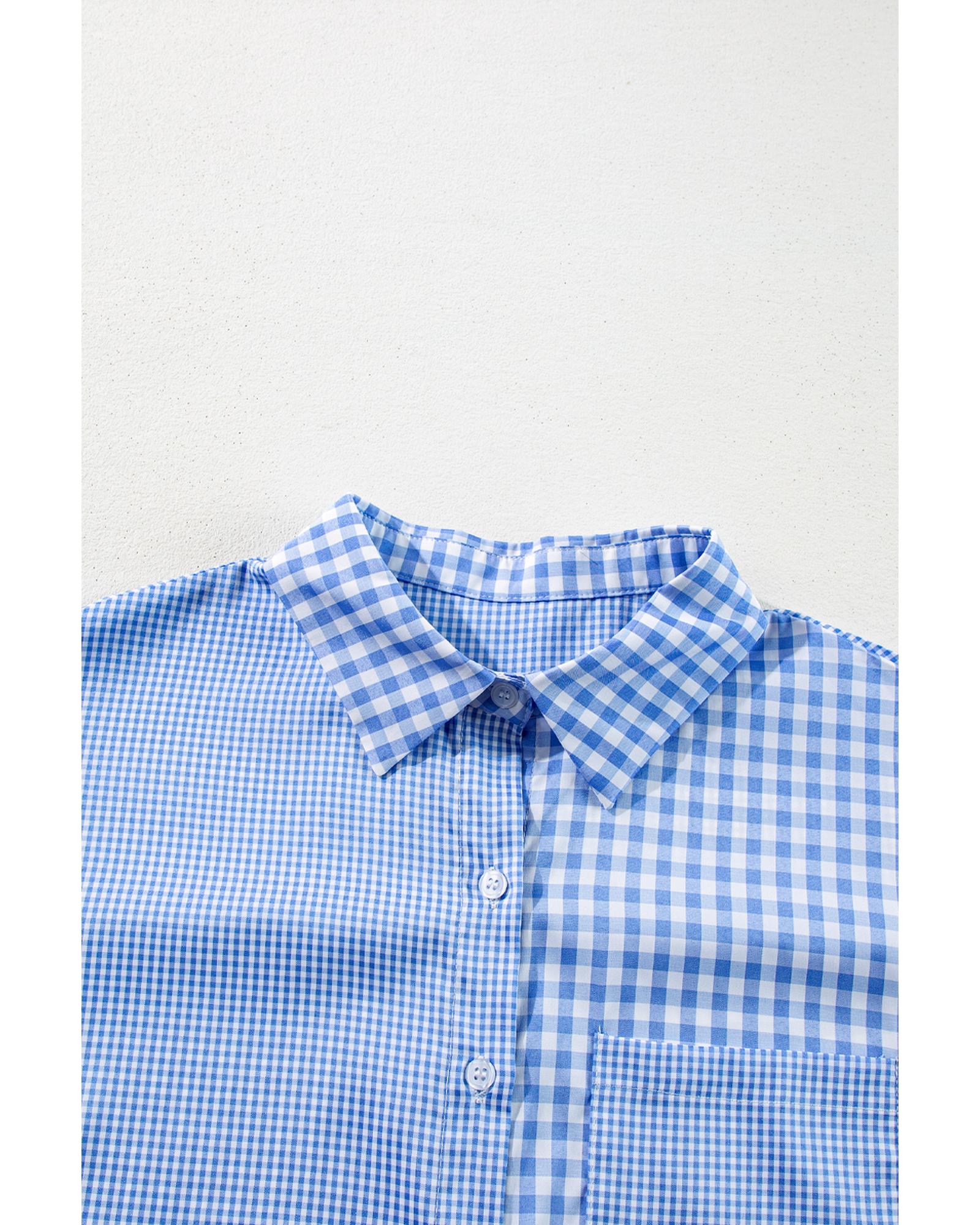 Sky Blue Stripe Plaid Patchwork Button up Long Sleeve Shirt – M