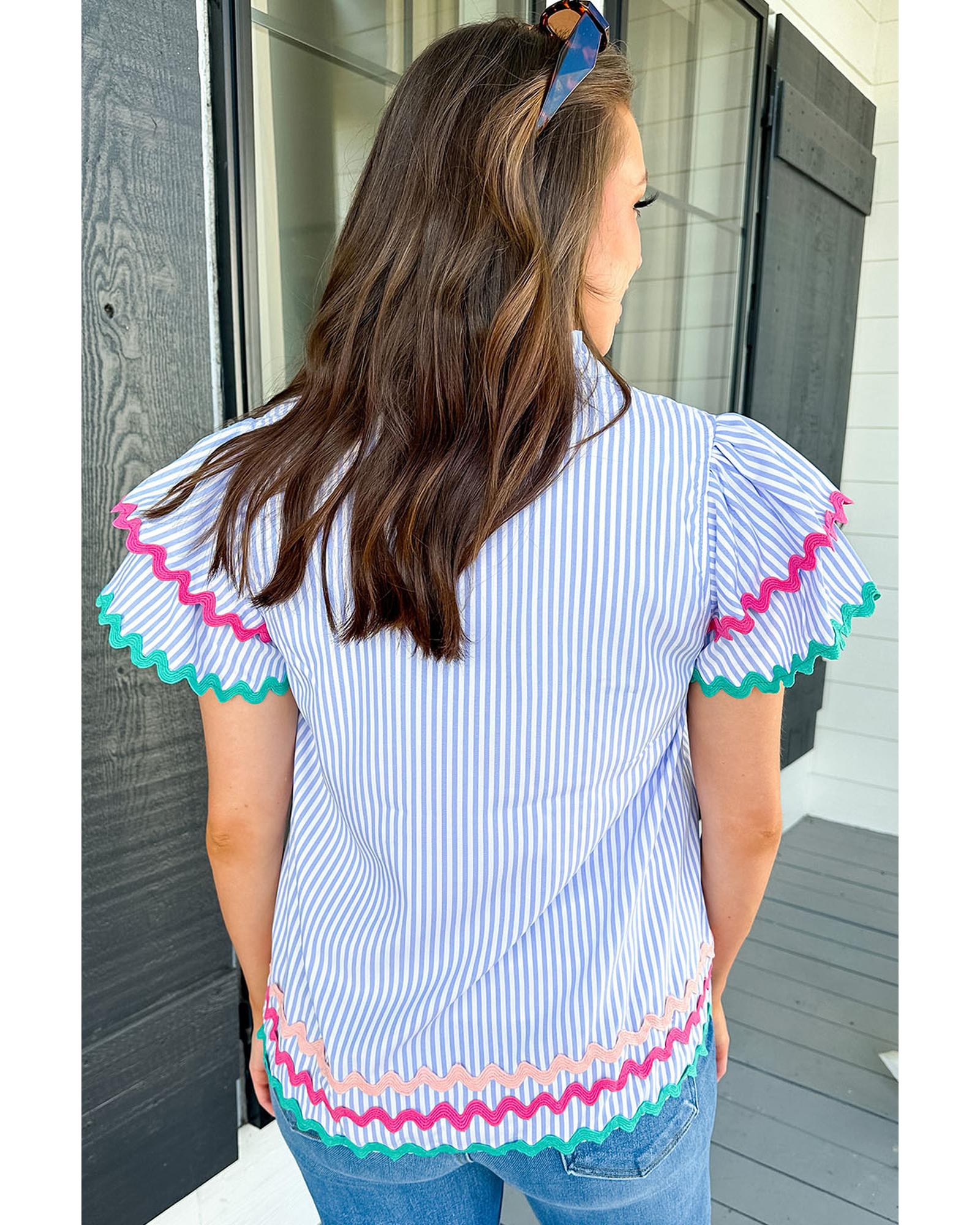 • Sky blue striped blouse with ricrac trim