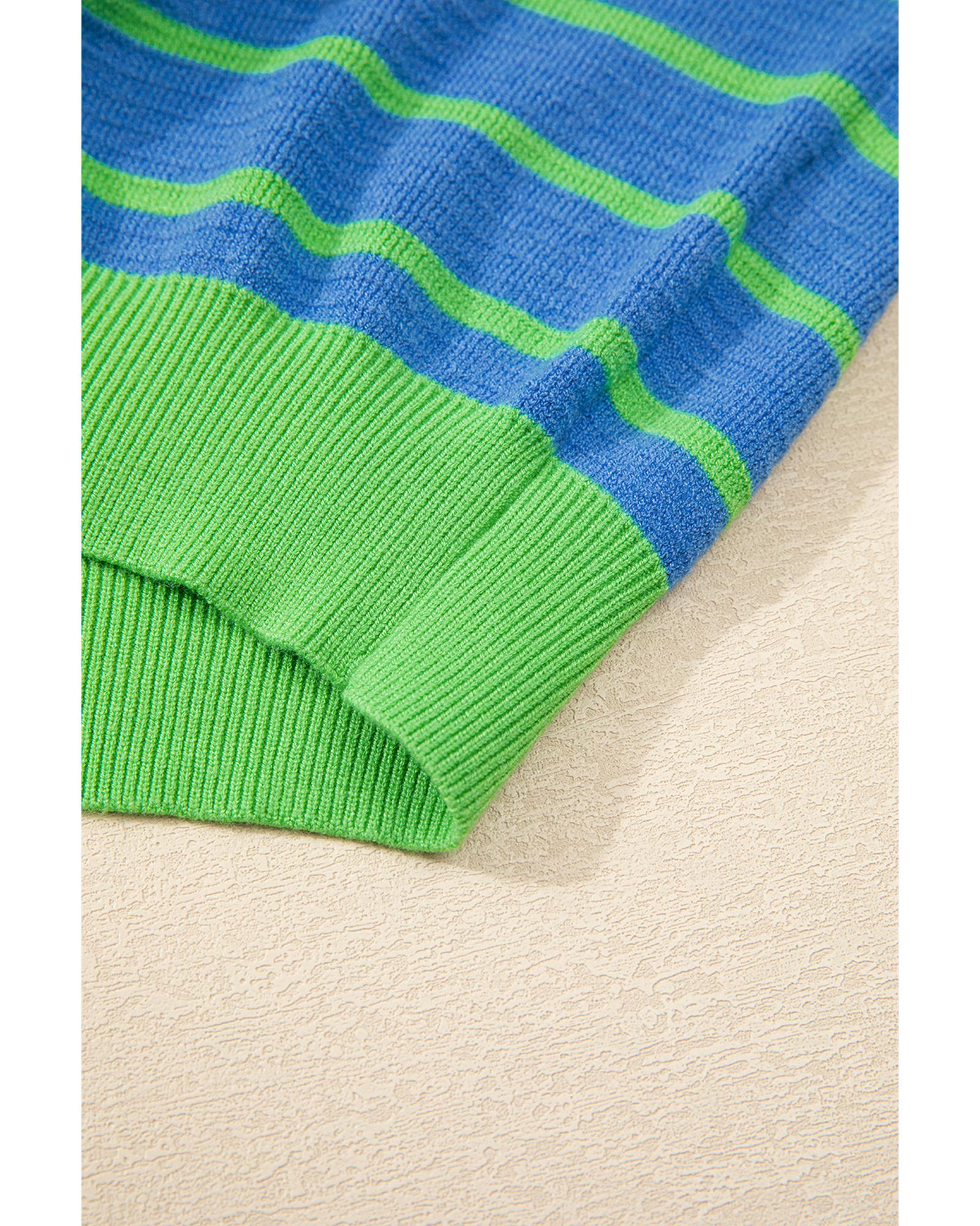 Rose Stripe Crew Neck Wide Sleeve Colorblock Sweater - M