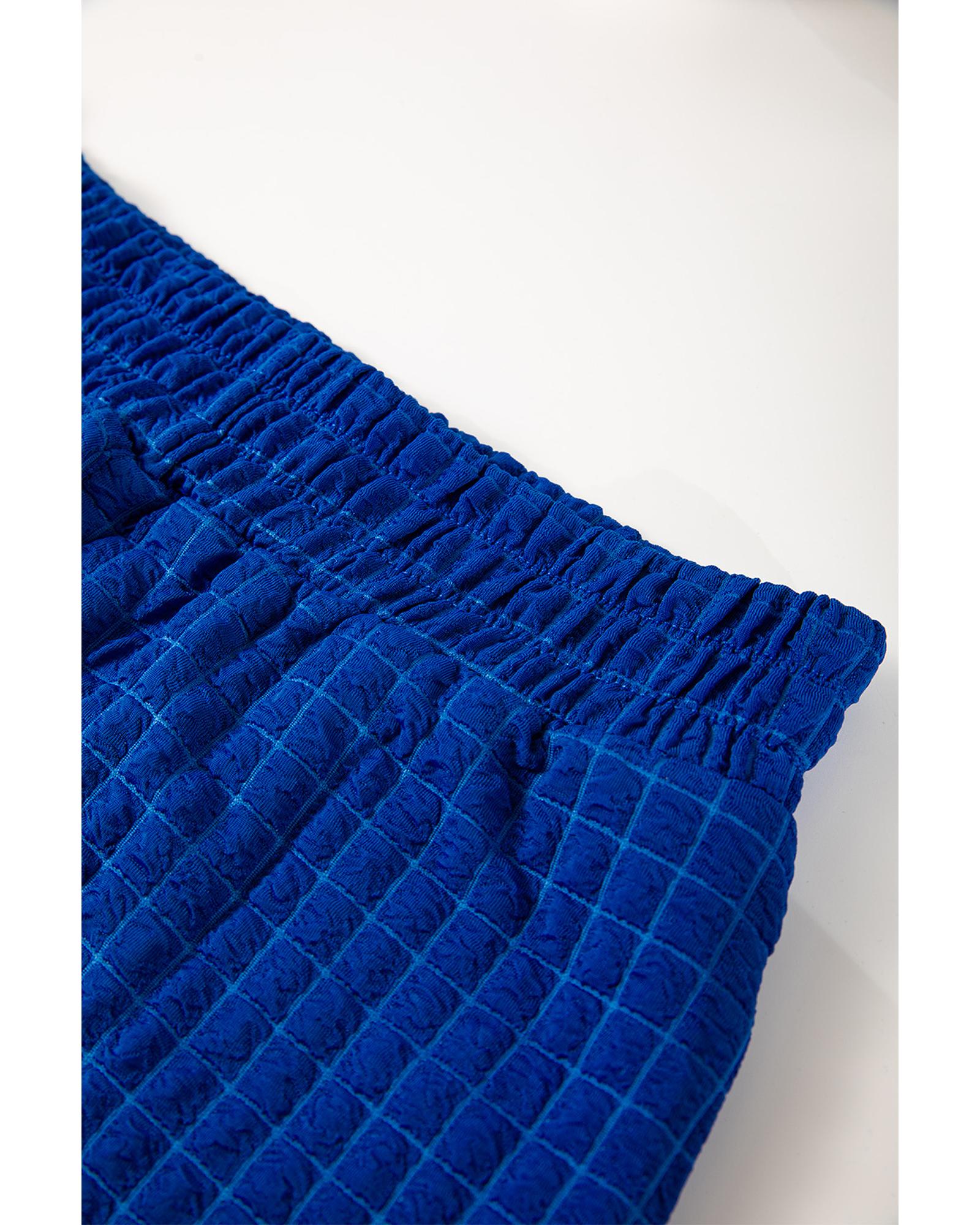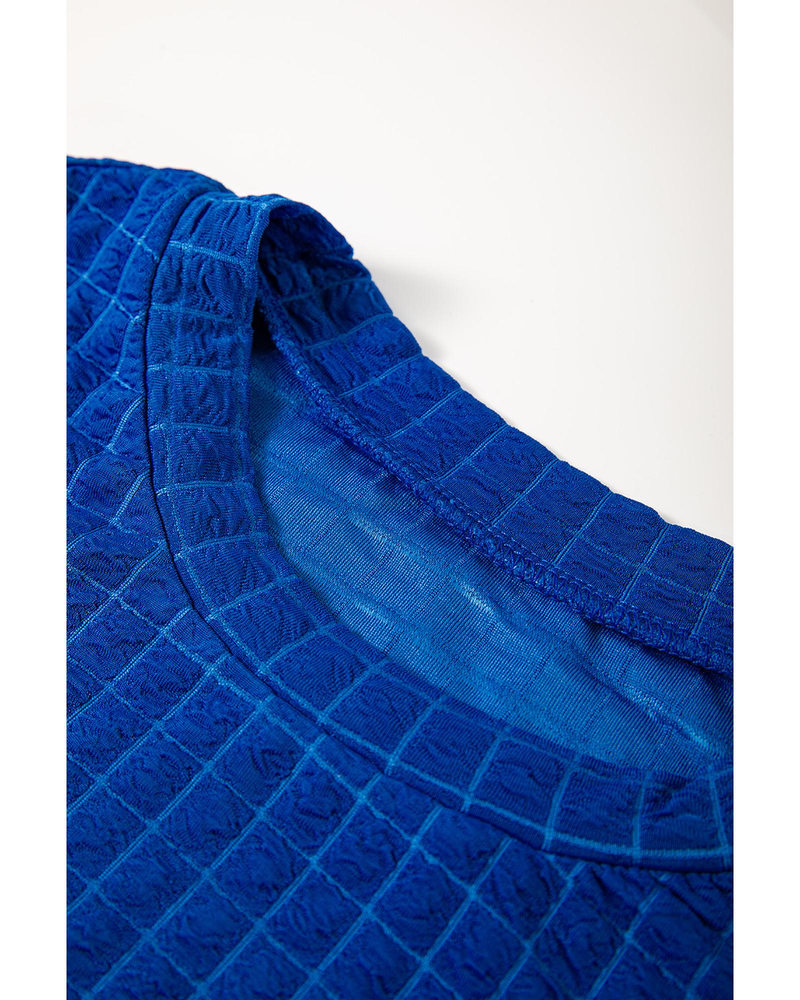 Sky Blue Textured Knit Cap Sleeve T Shirt and Wide Leg Pants Set – XL