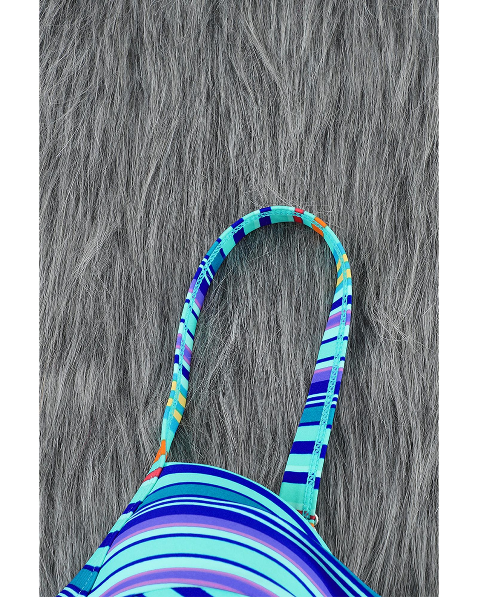 Sky Blue Twisted Bust Striped Bikini Set – 2XL