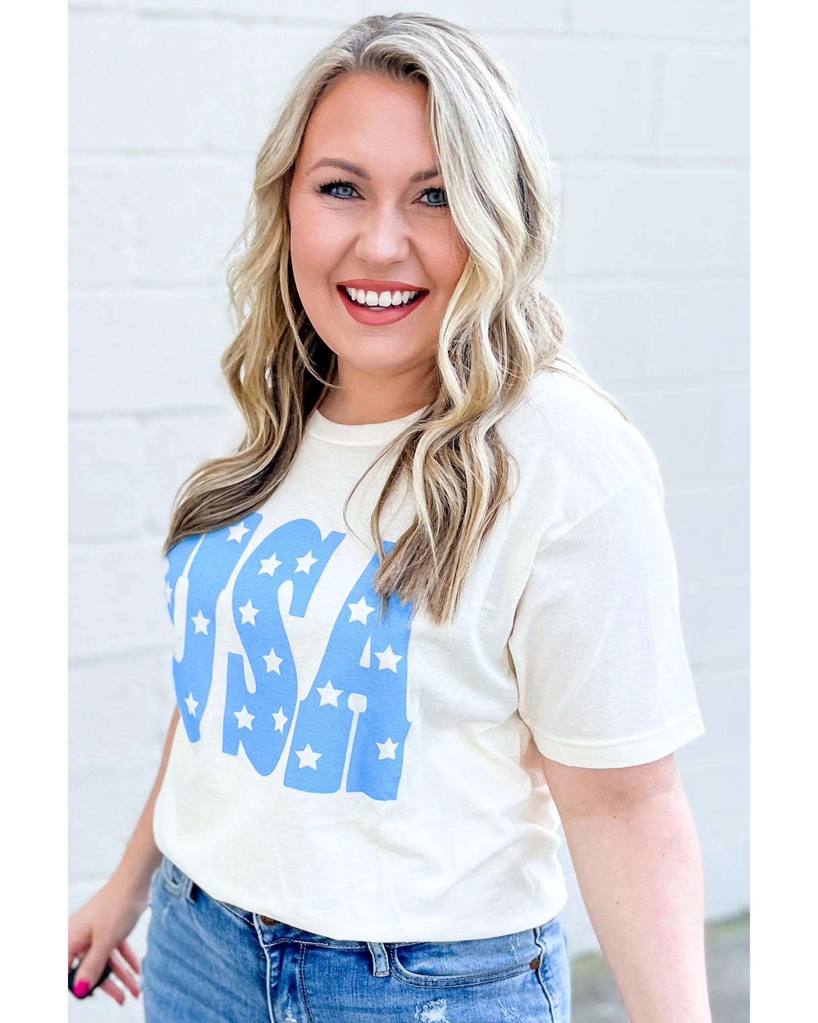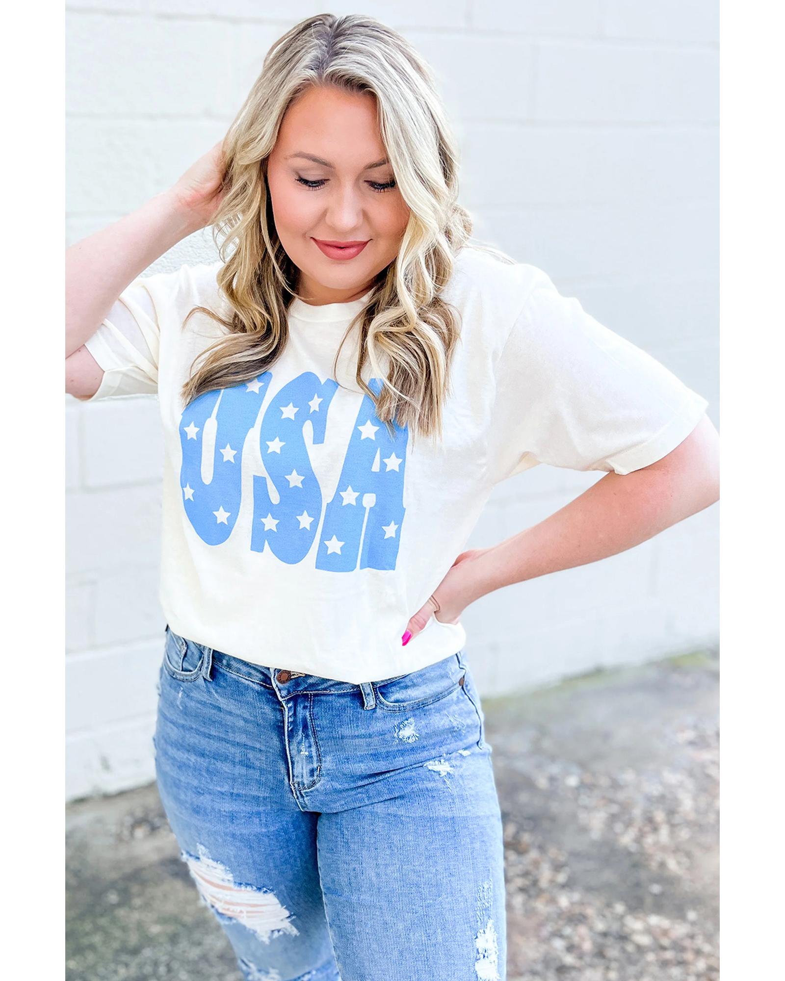 Sky Blue USA Graphic Crewneck Plus Size Patriotic Tee - 1X