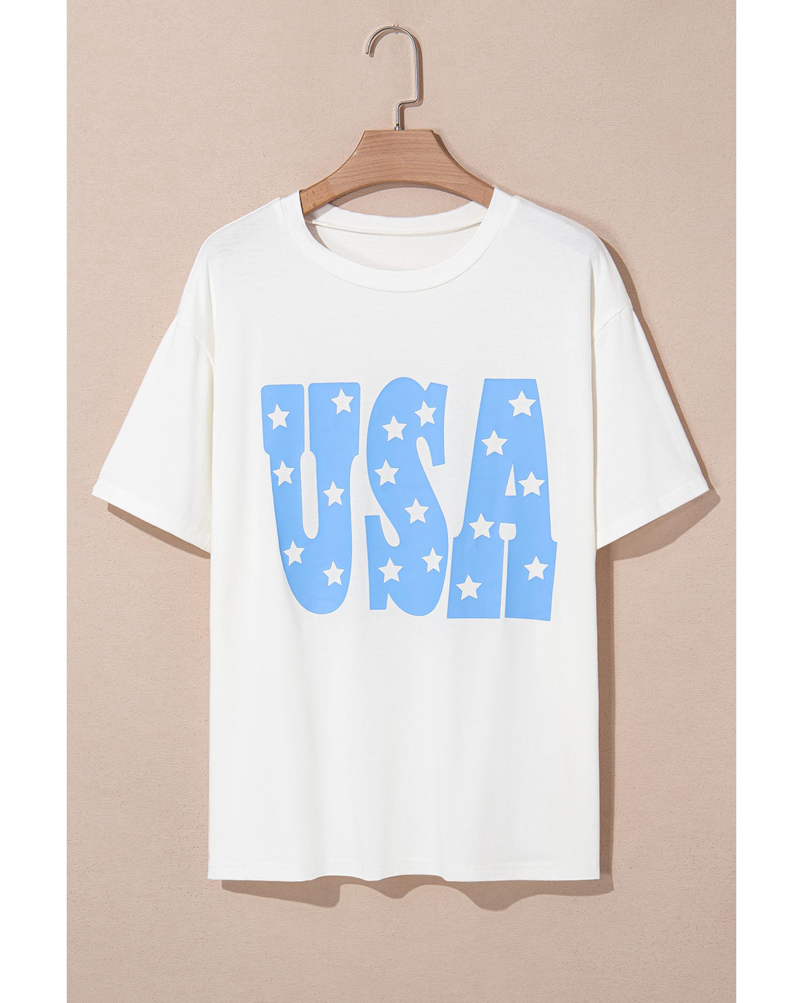 Sky Blue USA Graphic Crewneck Plus Size Patriotic Tee – 2X