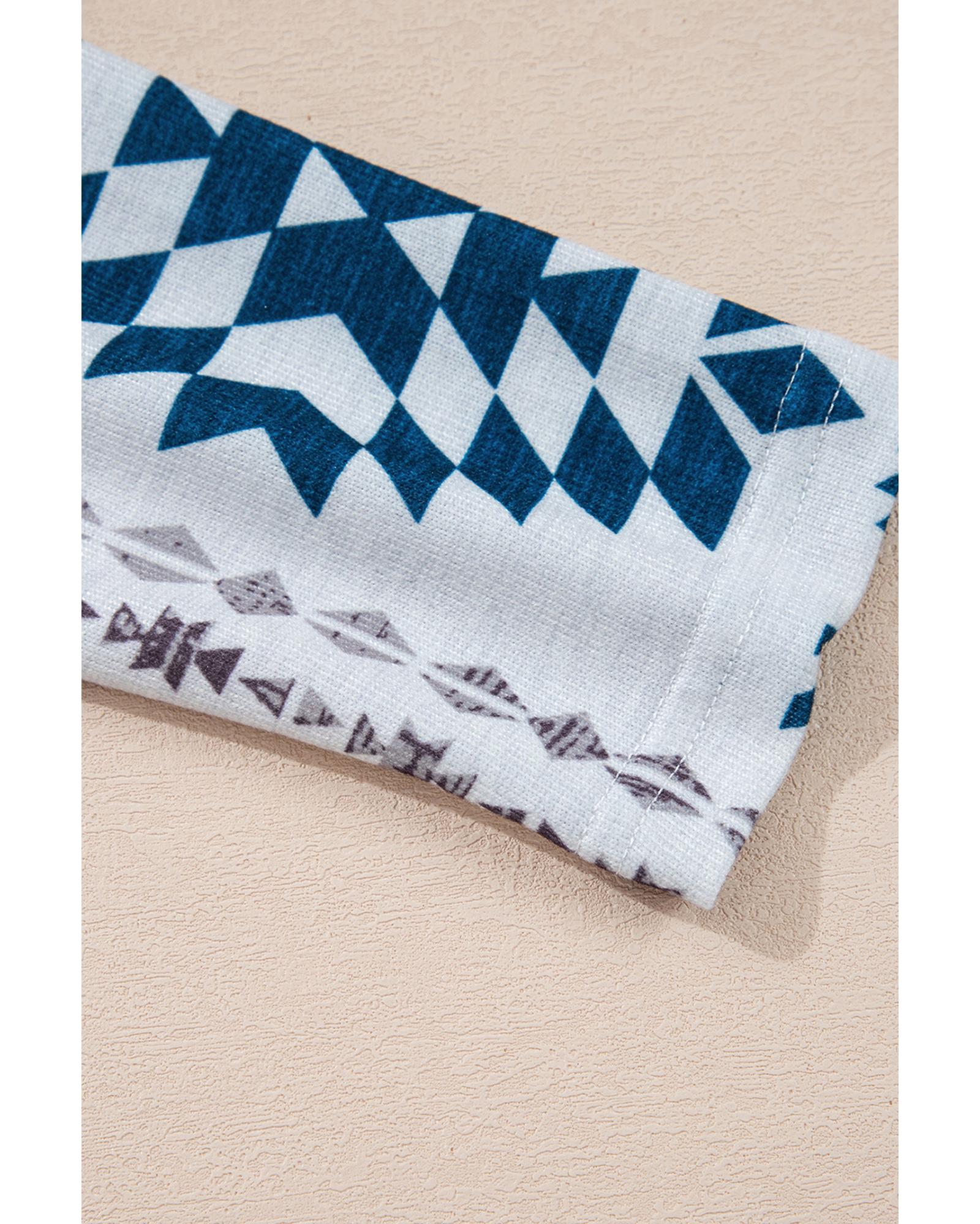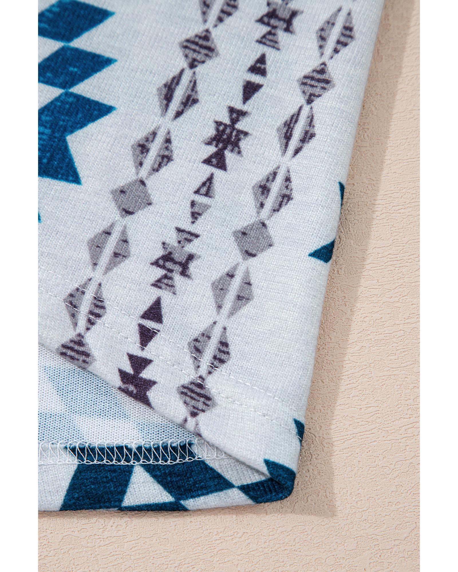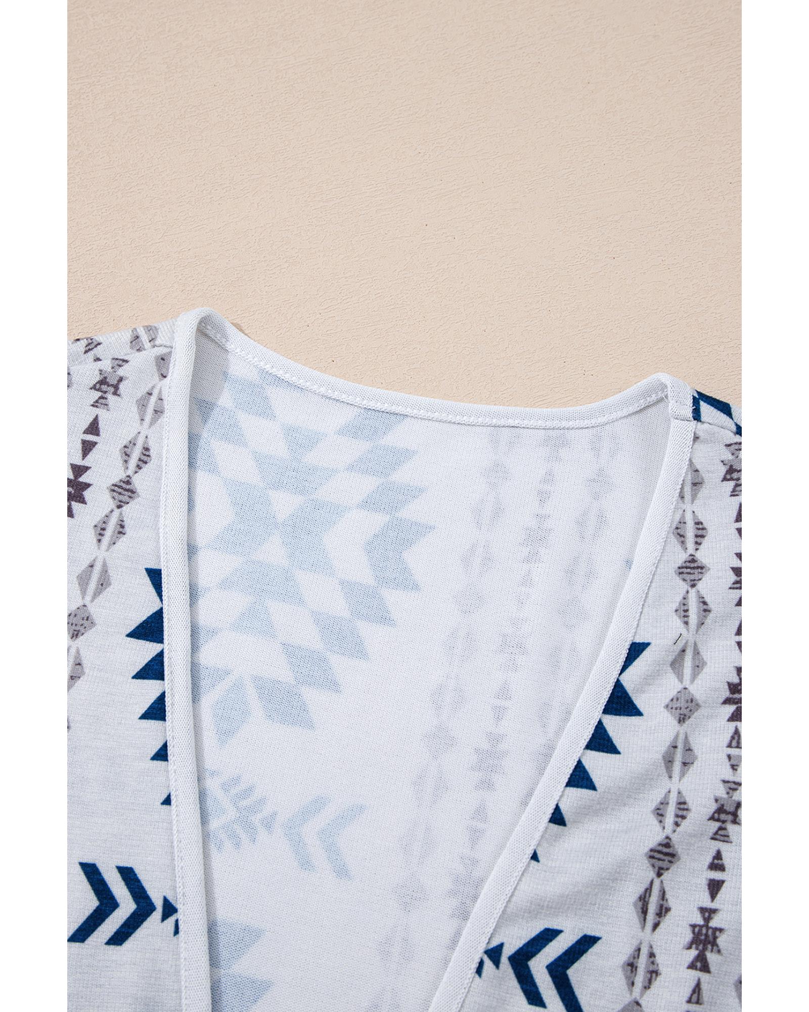 Sky Blue Western Aztec Printed Open Front Long Cardigan – S