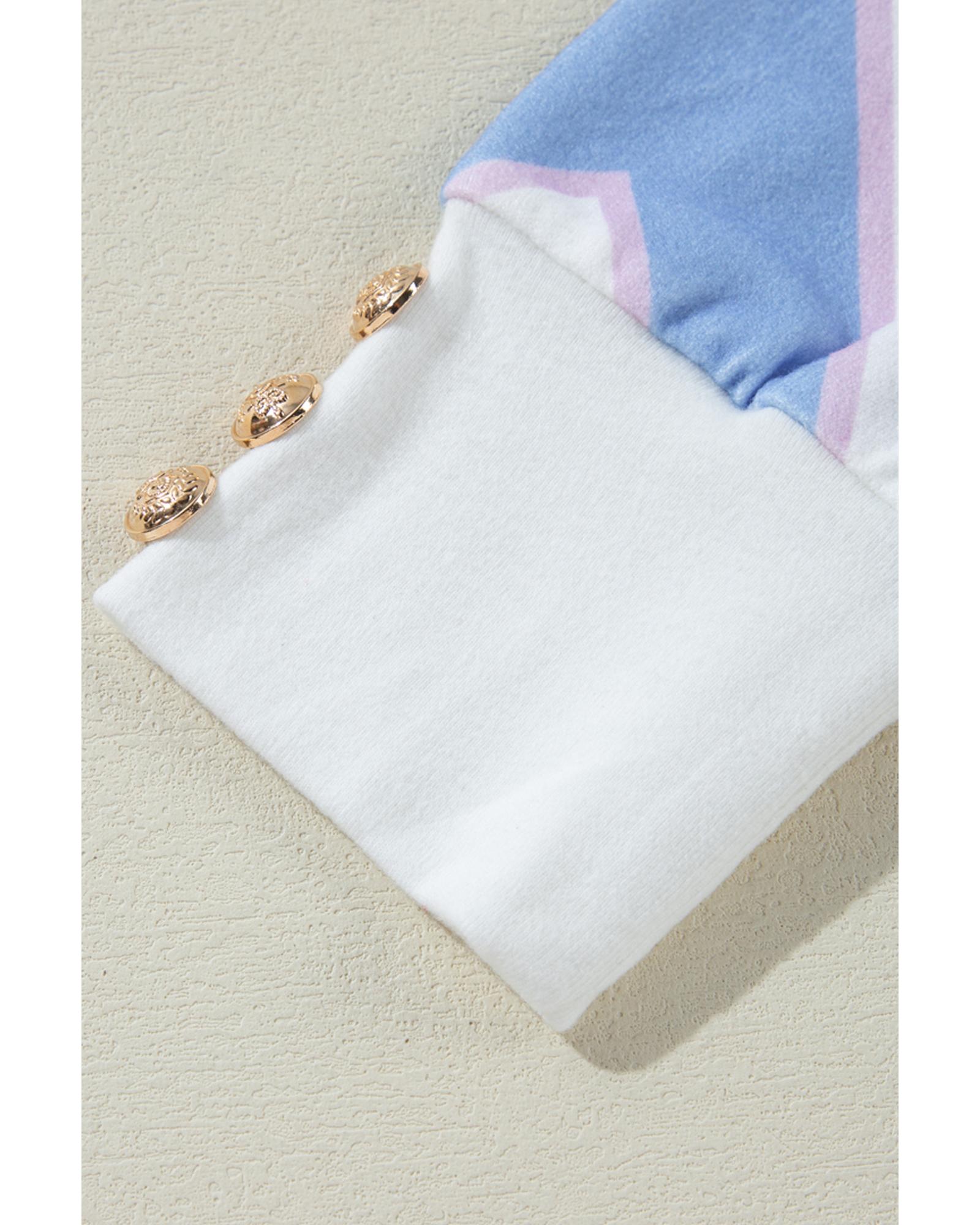 Sky Blue Zigzag Striped Print V Neck Oversized Top – L