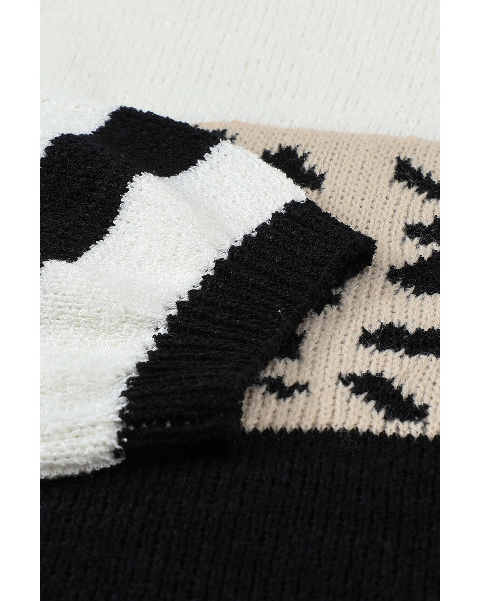 Slouchy Drop-shoulder Leopard Striped Colorblock Sweater – XL
