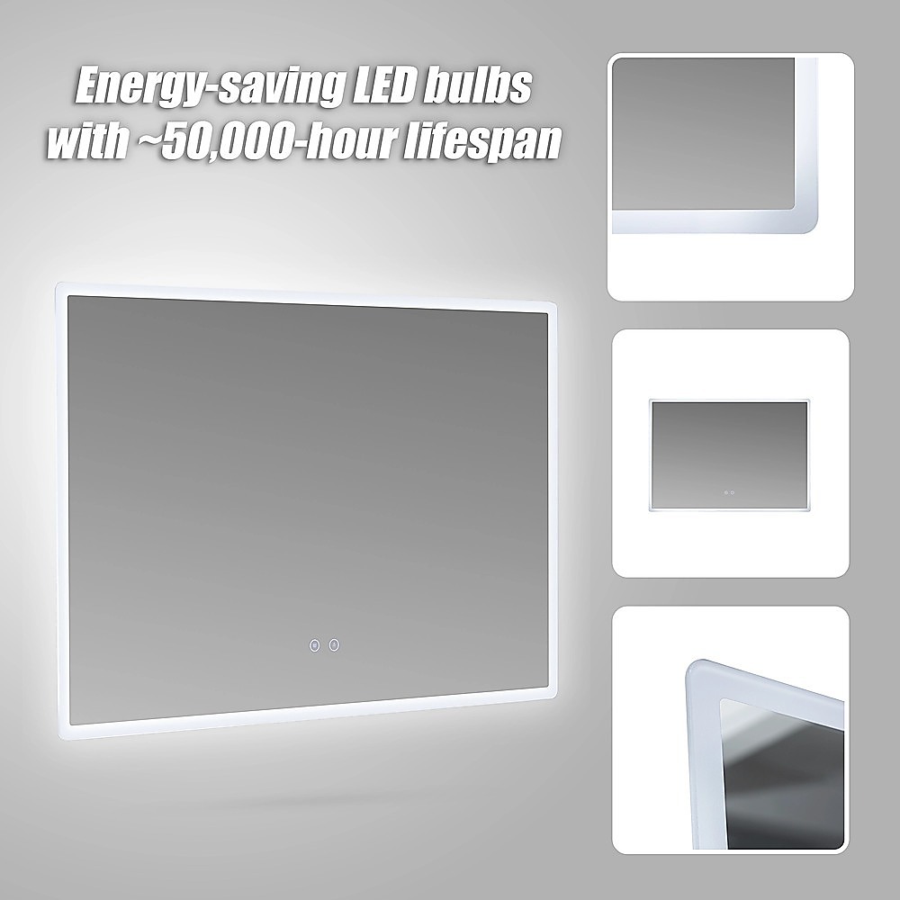 Simply press and hold the touchpad in the corner to change the brightness of the lights. Tap the button to toggle the lights on or off. The anti-fog technology means it will not be affected by condensation when you have a steamy shower.