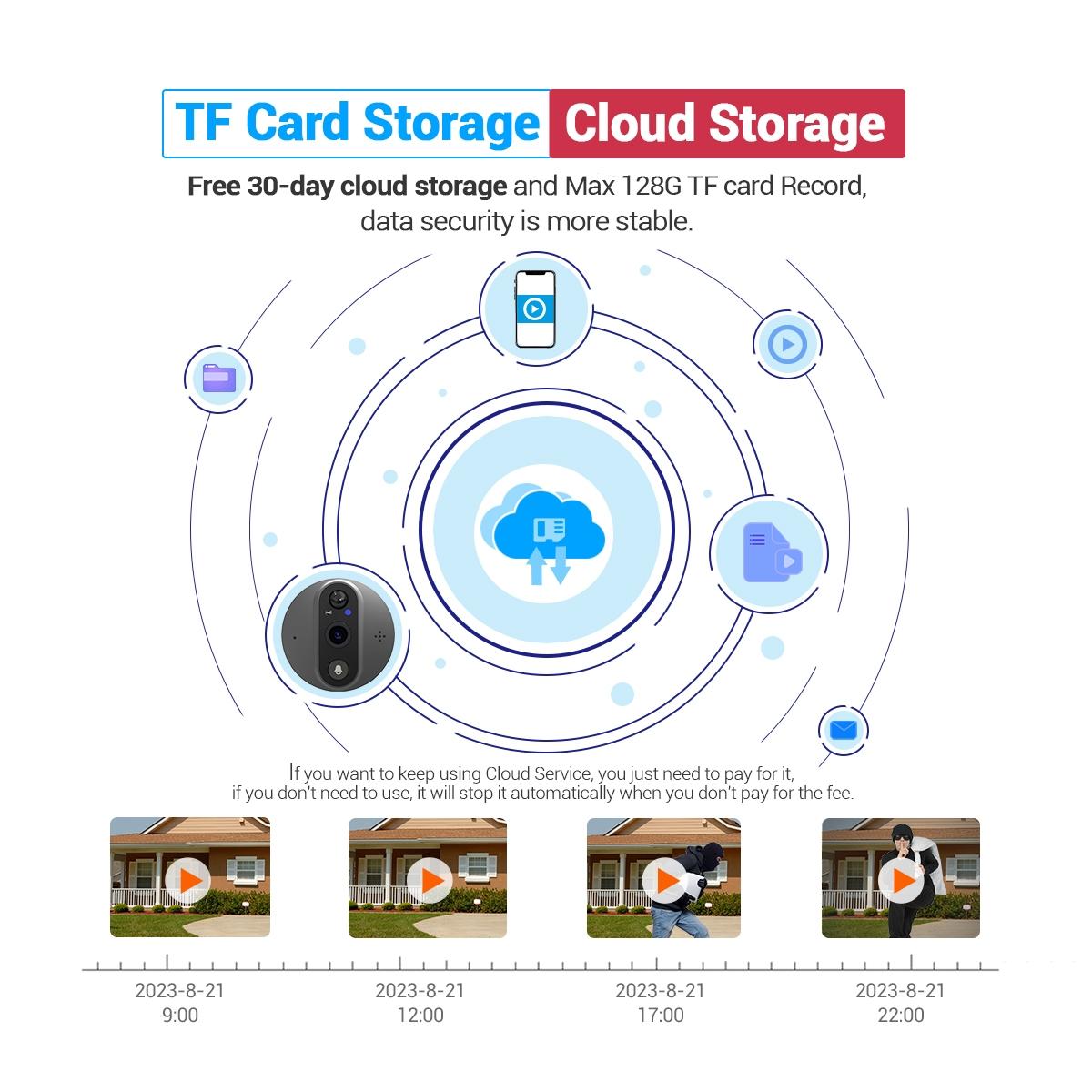 • 1 x 1080P 4.3 Inch Smart Wifi Digital Door Viewer Supports Wide-Angle Pir Night Vision Dingdong Photo White