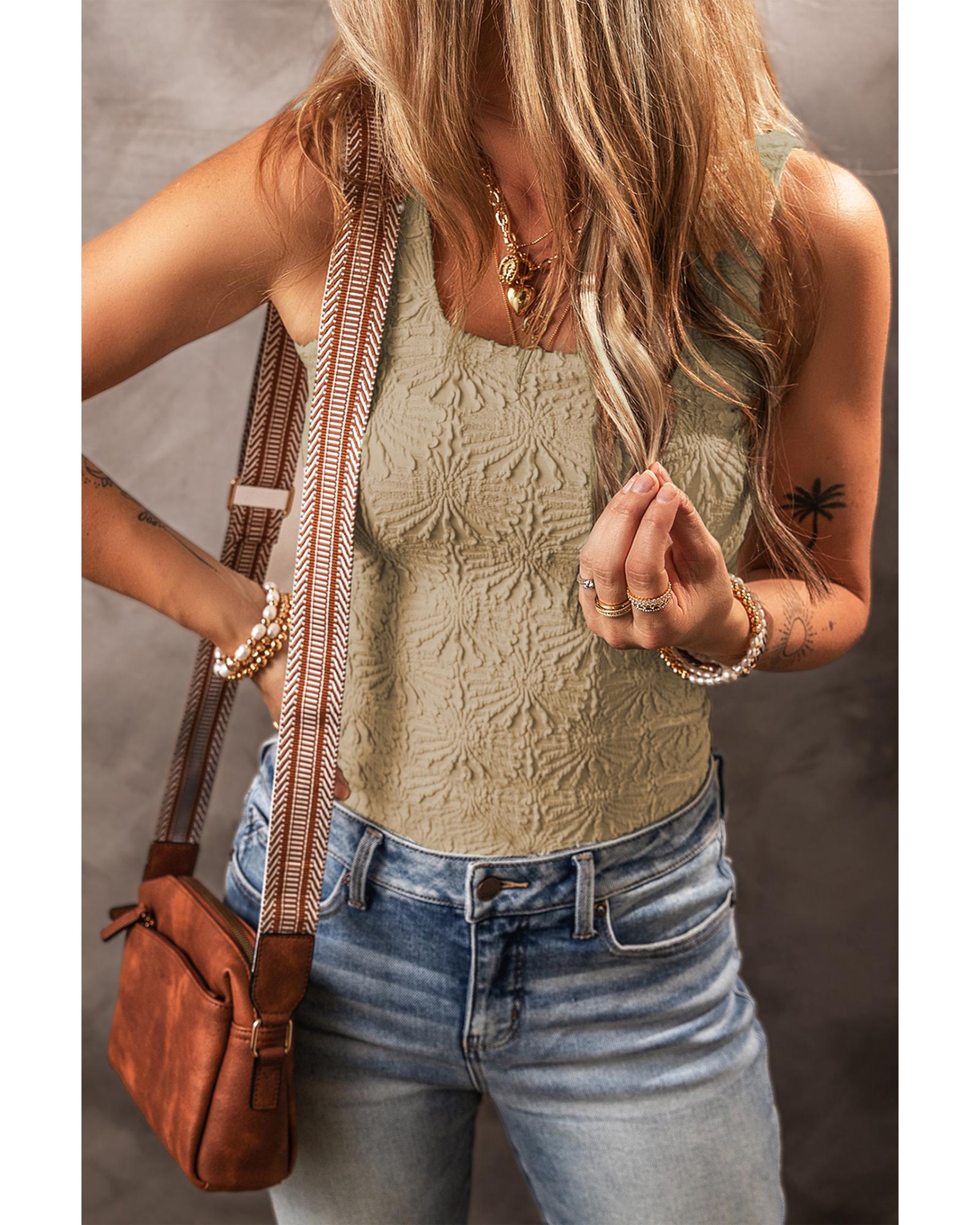 Smoke Gray Floral Jacquard Square Neck Tank Top – 2XL
