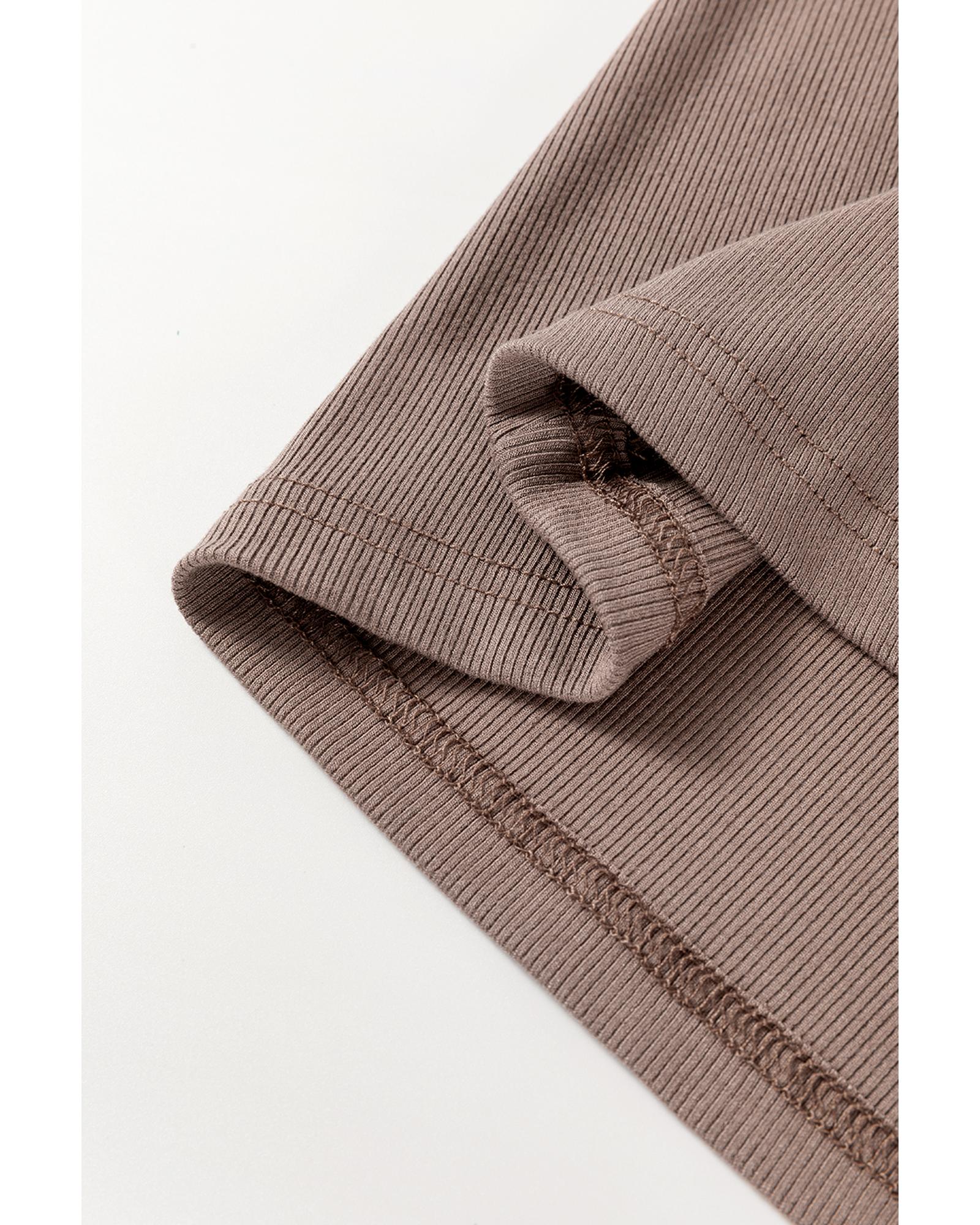 Smoke Gray Ribbed Knit Colorblock Edge U Neck Slim Fit Tank Top – S
