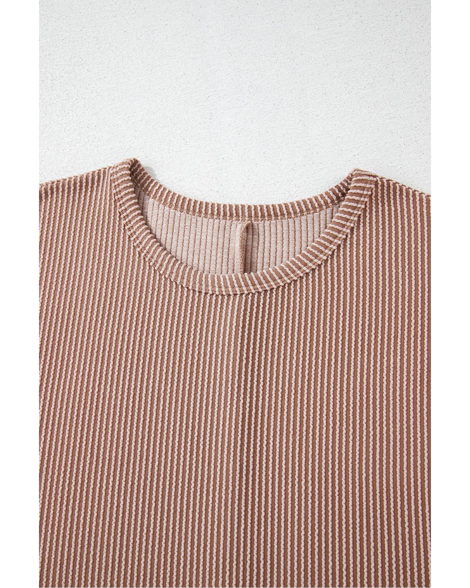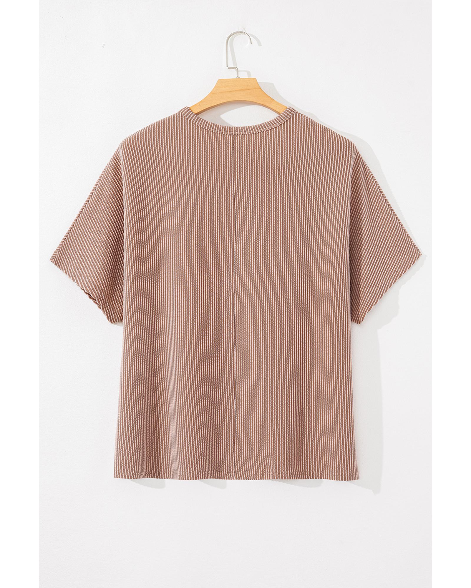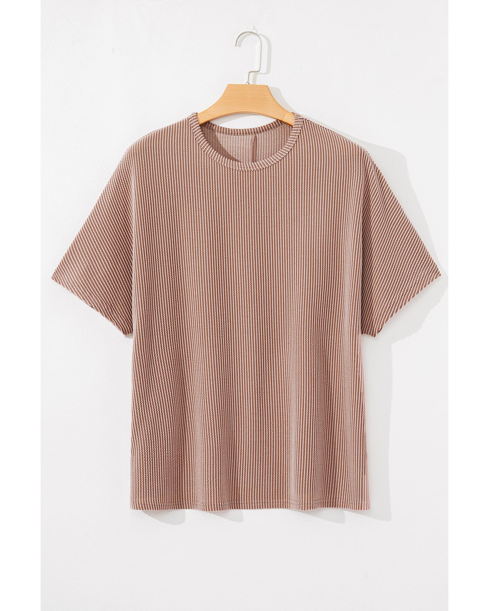 • Smoke Gray Ribbed Striped Crew Neck Plus Size Knit T Shirt
