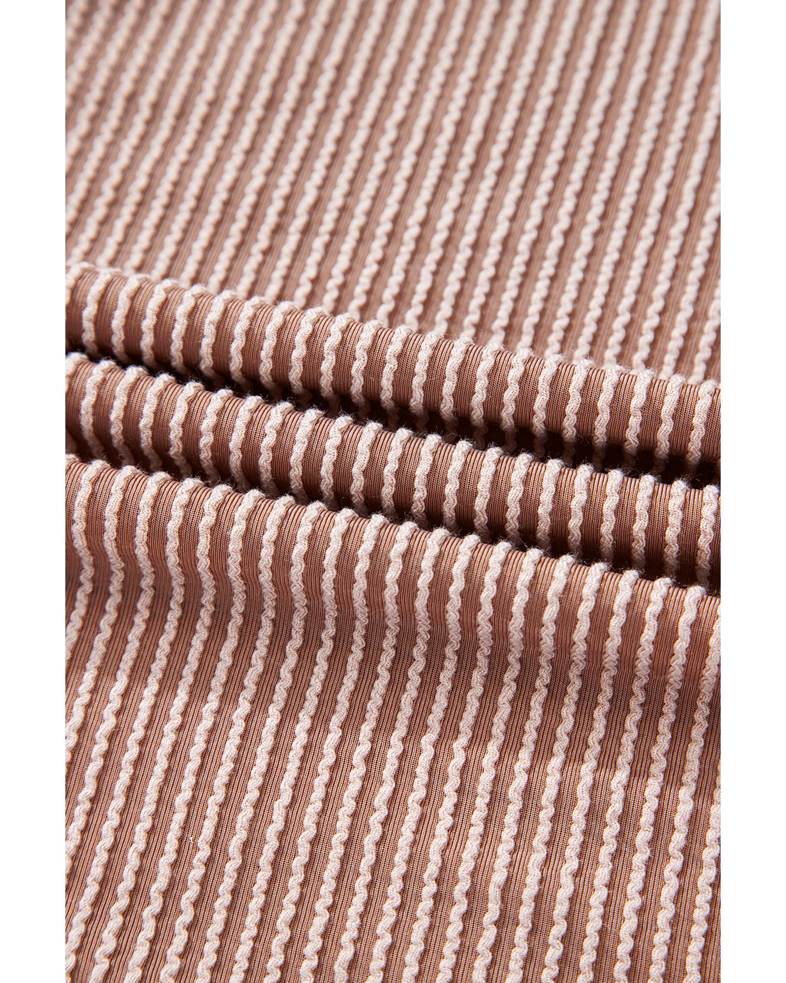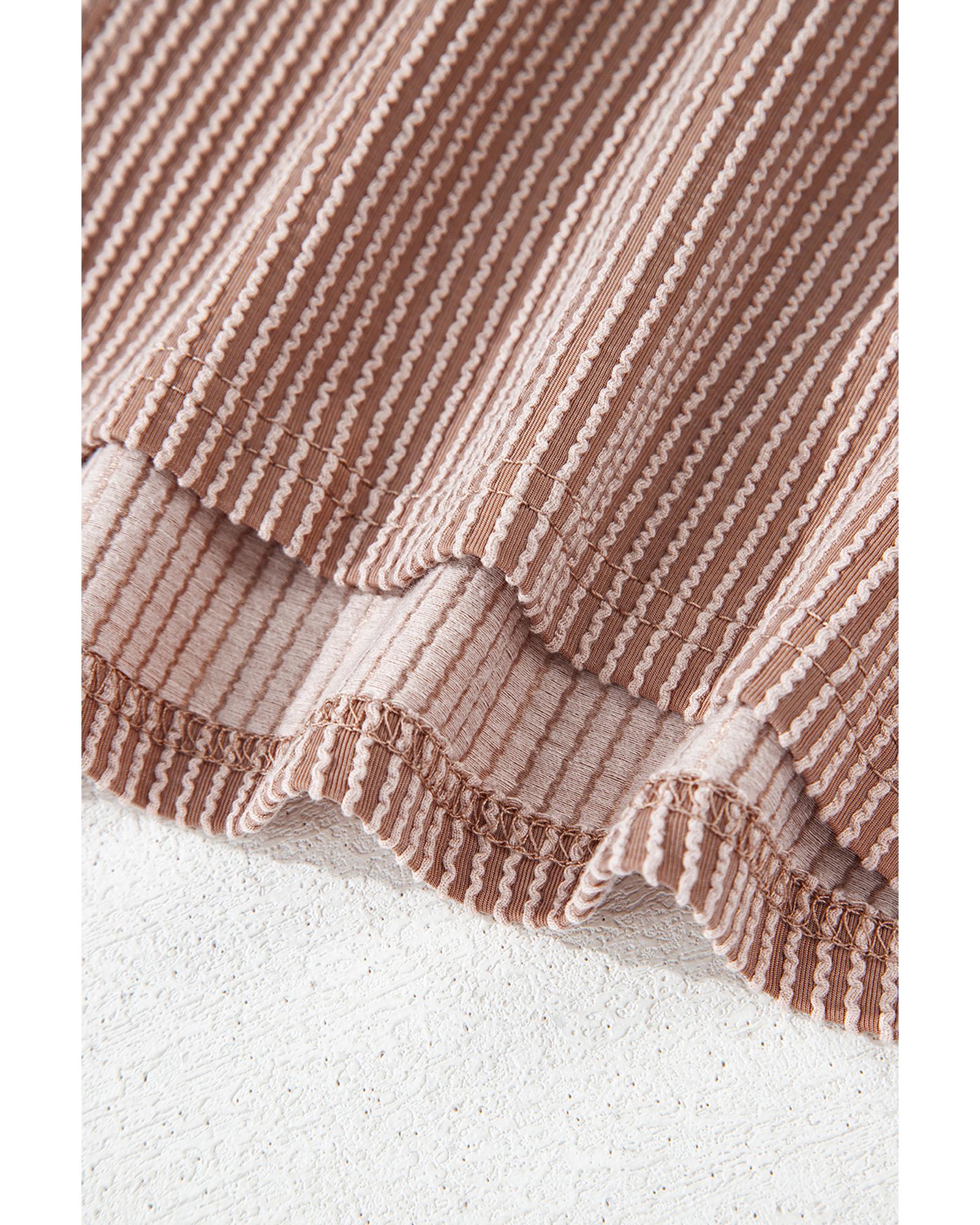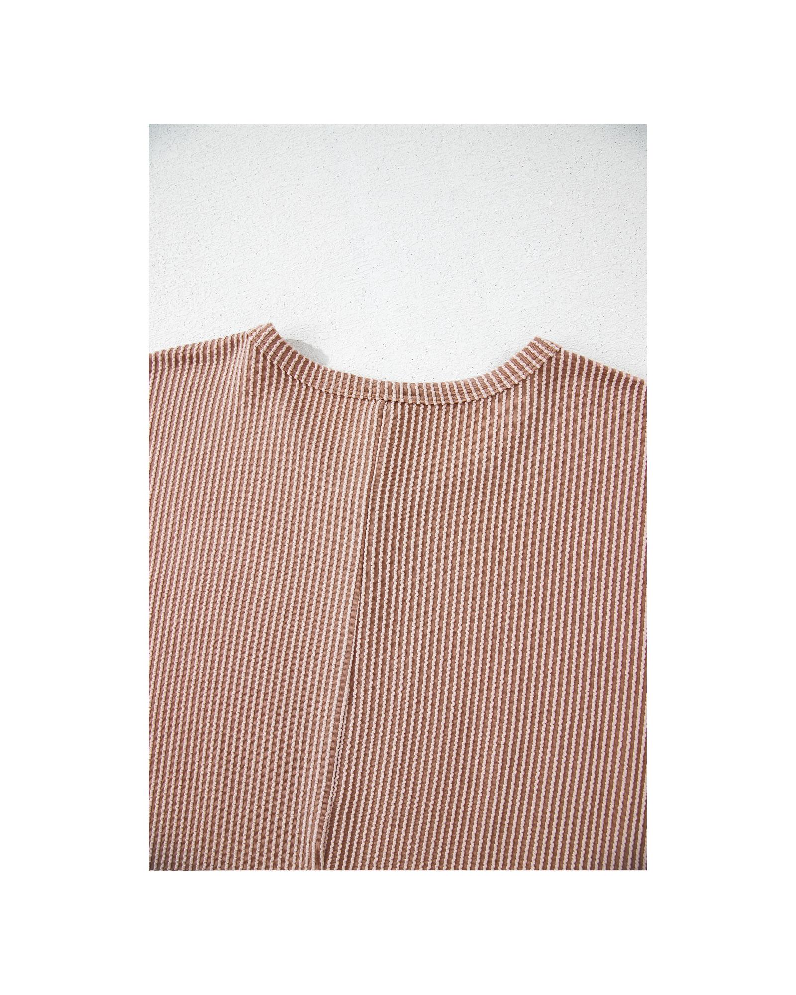• Smoke Gray Ribbed Striped Crew Neck Plus Size Knit T Shirt