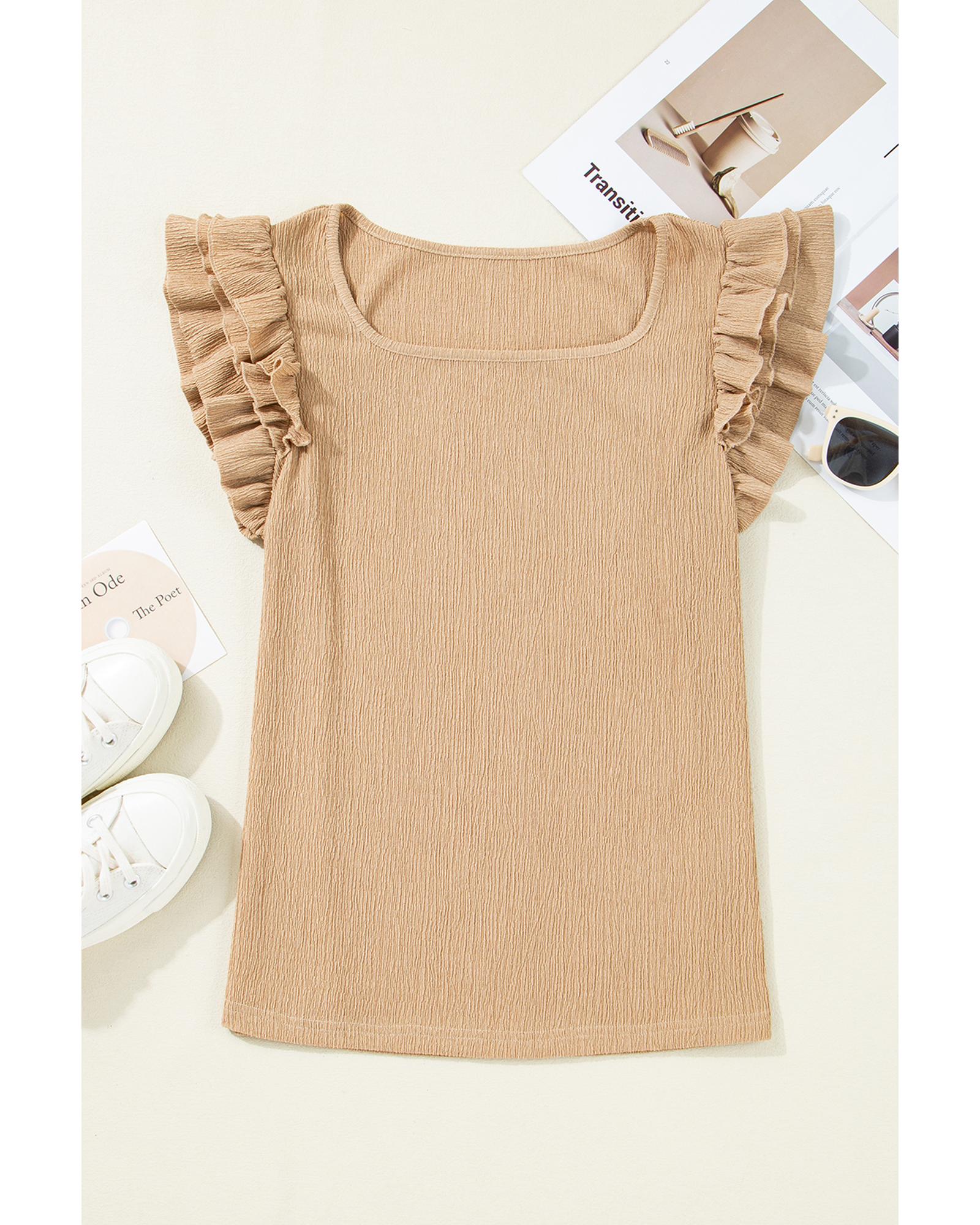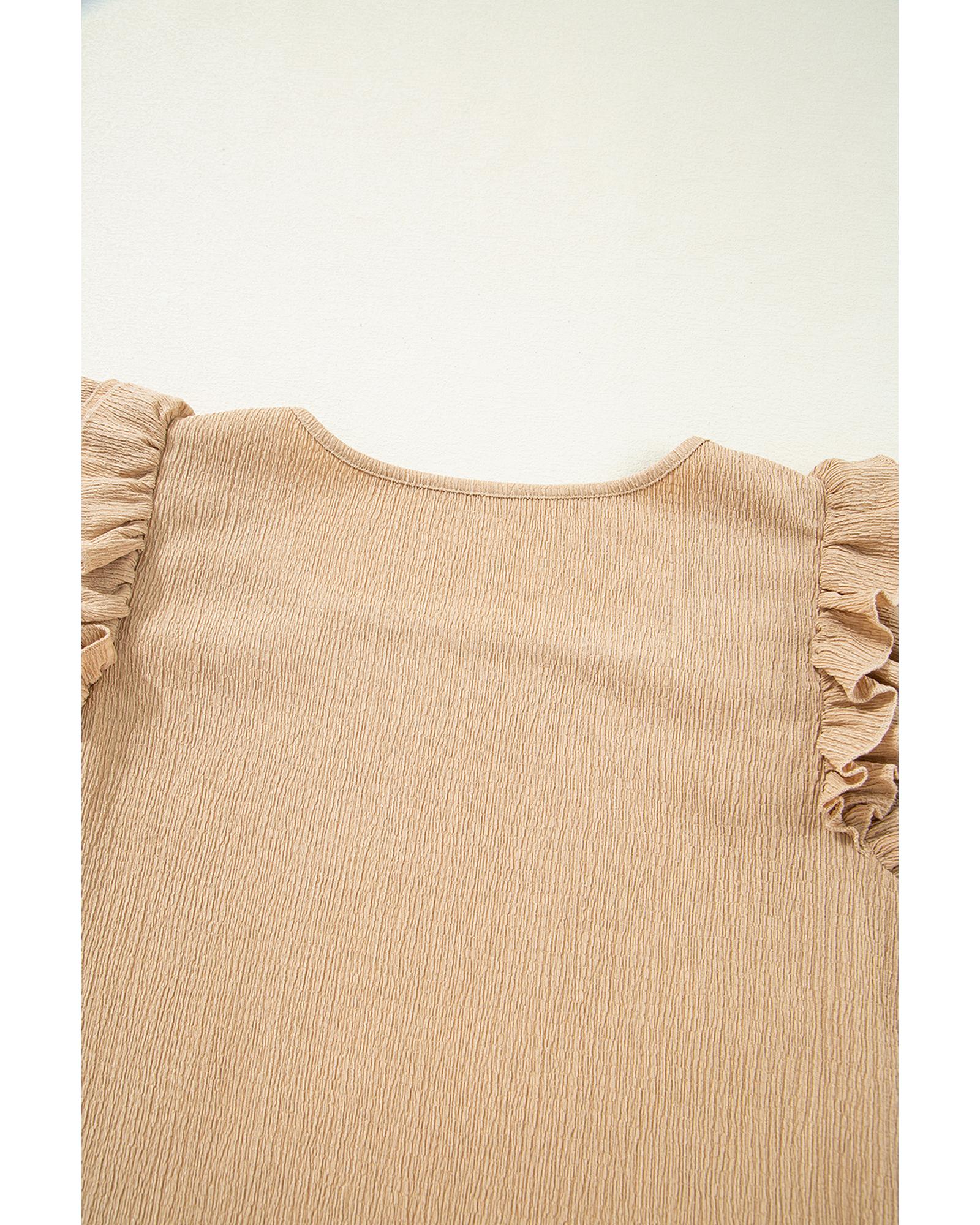 Smoke Gray Ruffled Tiered Sleeve Square Neck Textured Top – M
