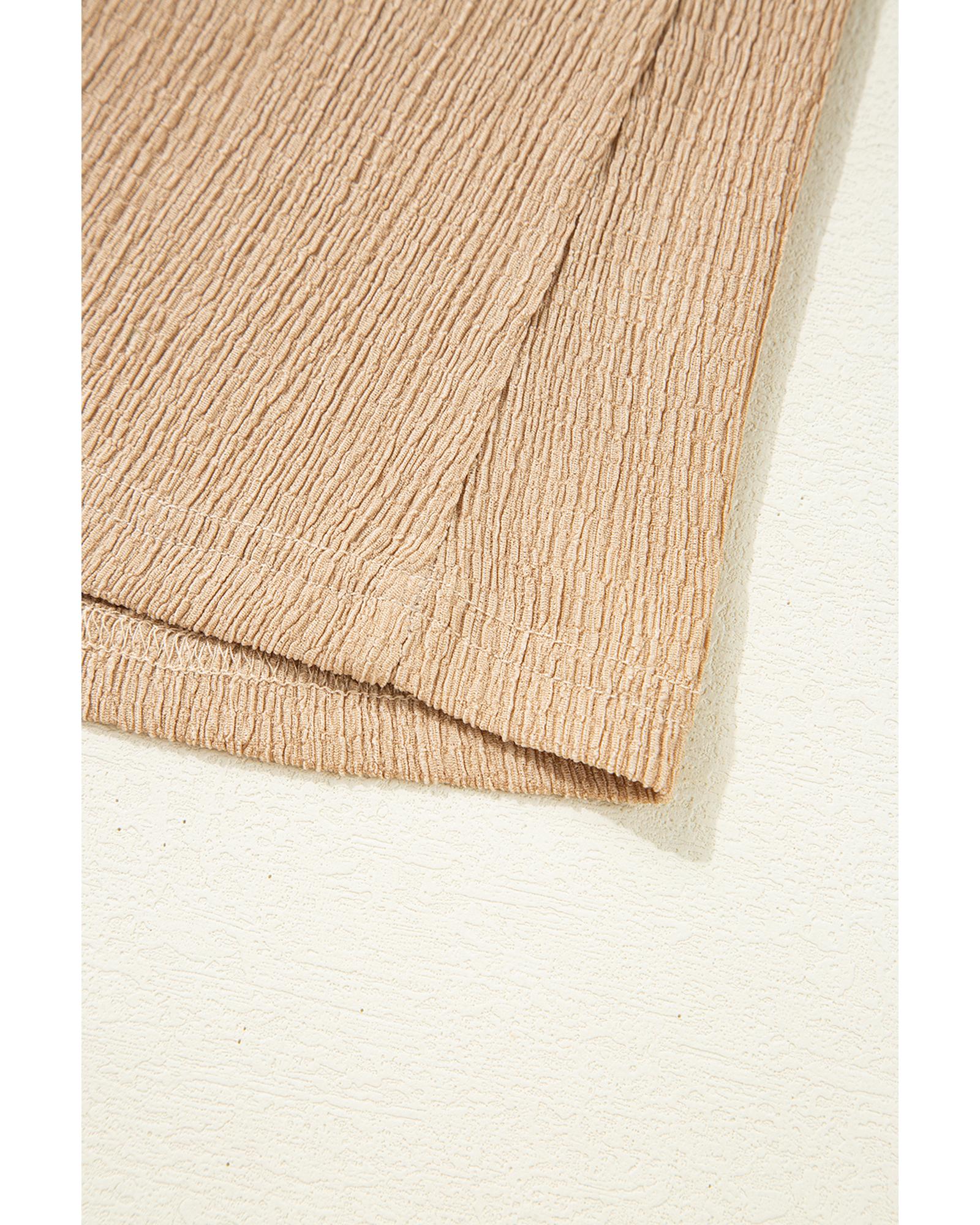 Smoke Gray Ruffled Tiered Sleeve Square Neck Textured Top – S