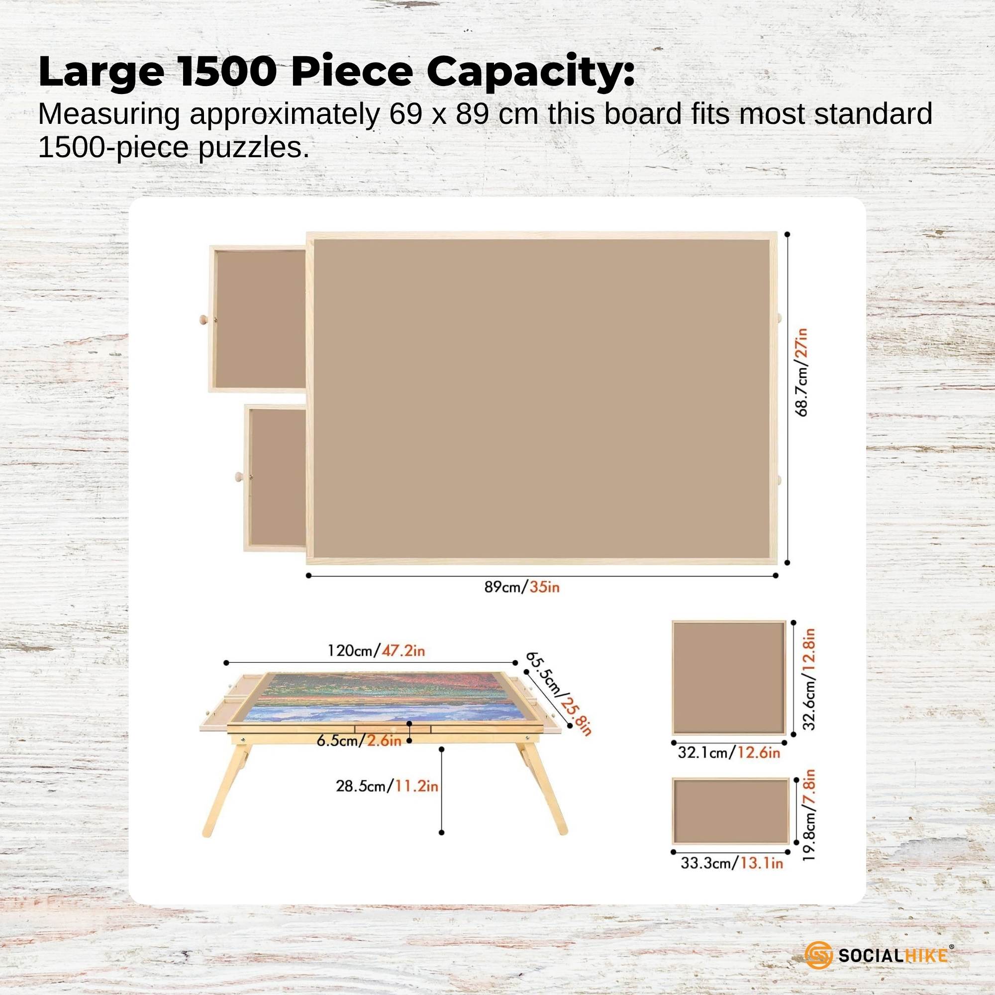 Social Hike 1500pcs Puzzle Board 4 Drawer with Cover - Wooden Rotating Tabletop