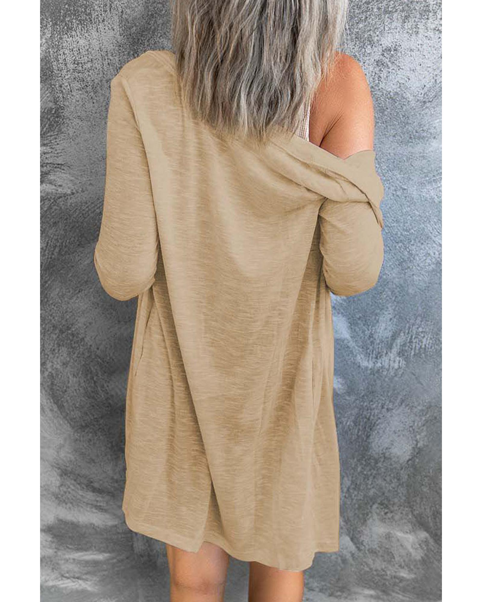 Solid Color Open-Front Buttons Cardigan – M