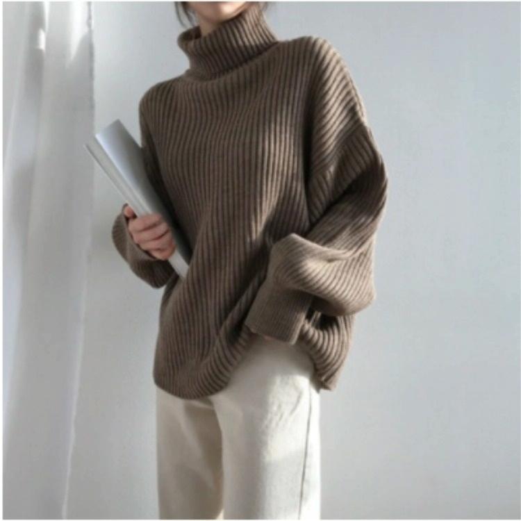 Solid Colour Turtleneck Outer Wear Pullover Casual Sweater Beige – Free Size – Coffee Free Size