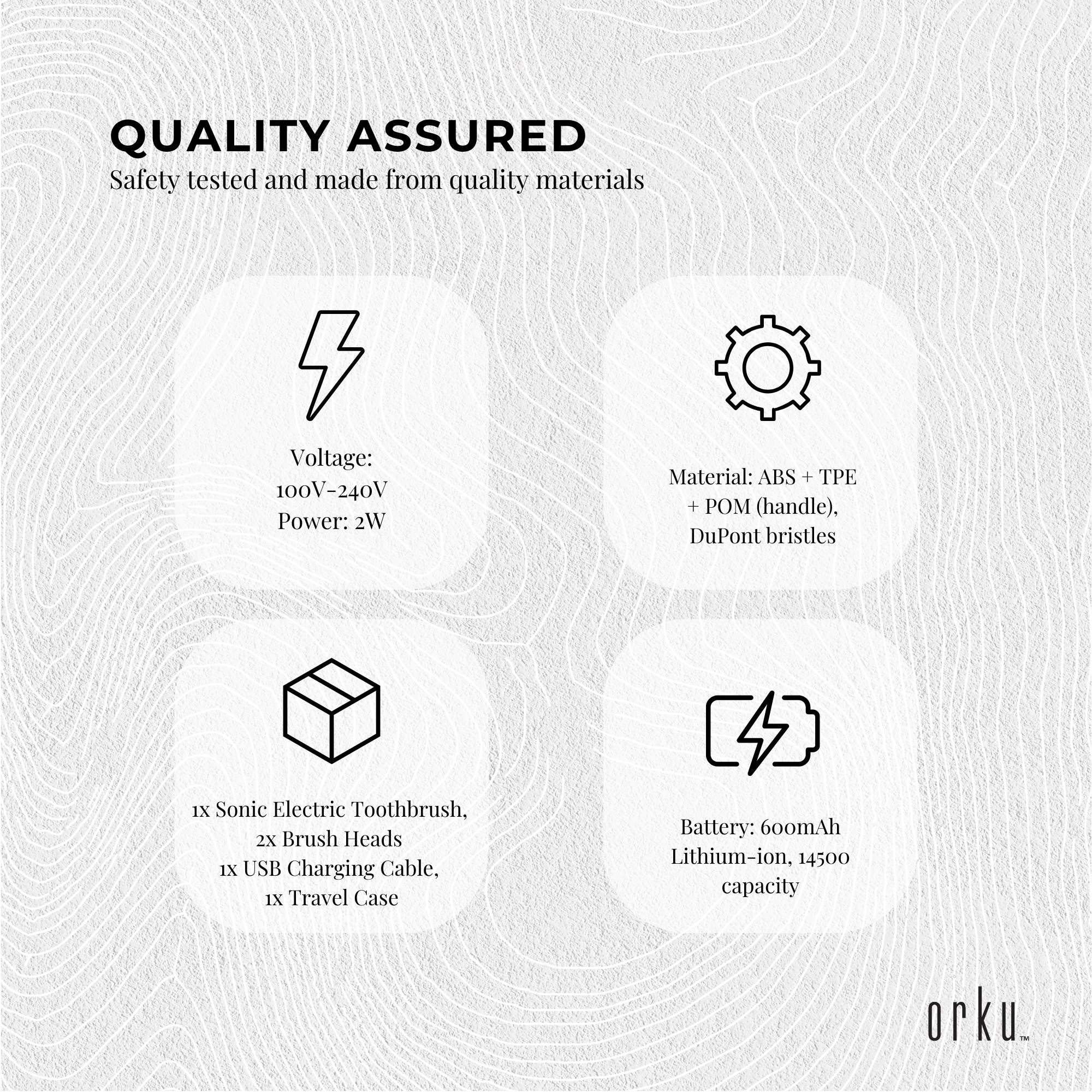 Charging within 4 hrs via USB and can last up to  60 days, this waterproof electric toothbrush offers 5 brushing modes for varying oral care needs and 100 % Du-Pont brush bristles.