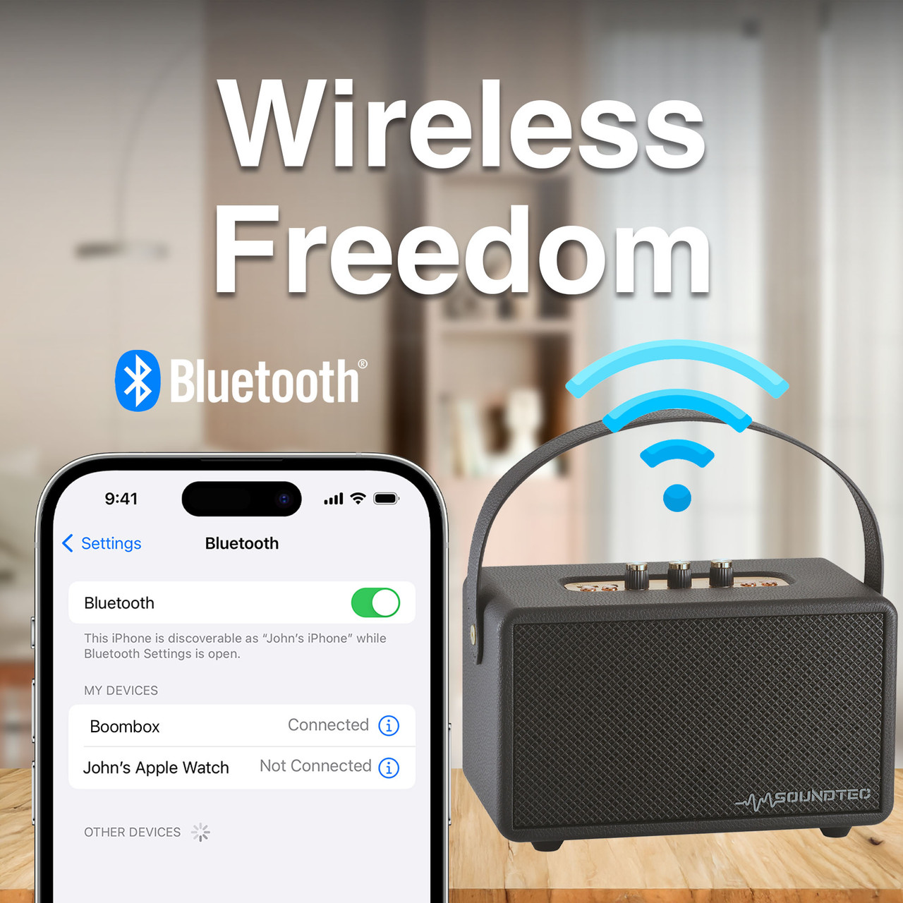 Built to Go Anywhere – A durable metal grille and built-in handle make this boombox easy to carry. Whether youre heading to a picnic, setting up in the garage, or taking your music outdoors, its designed for convenience.