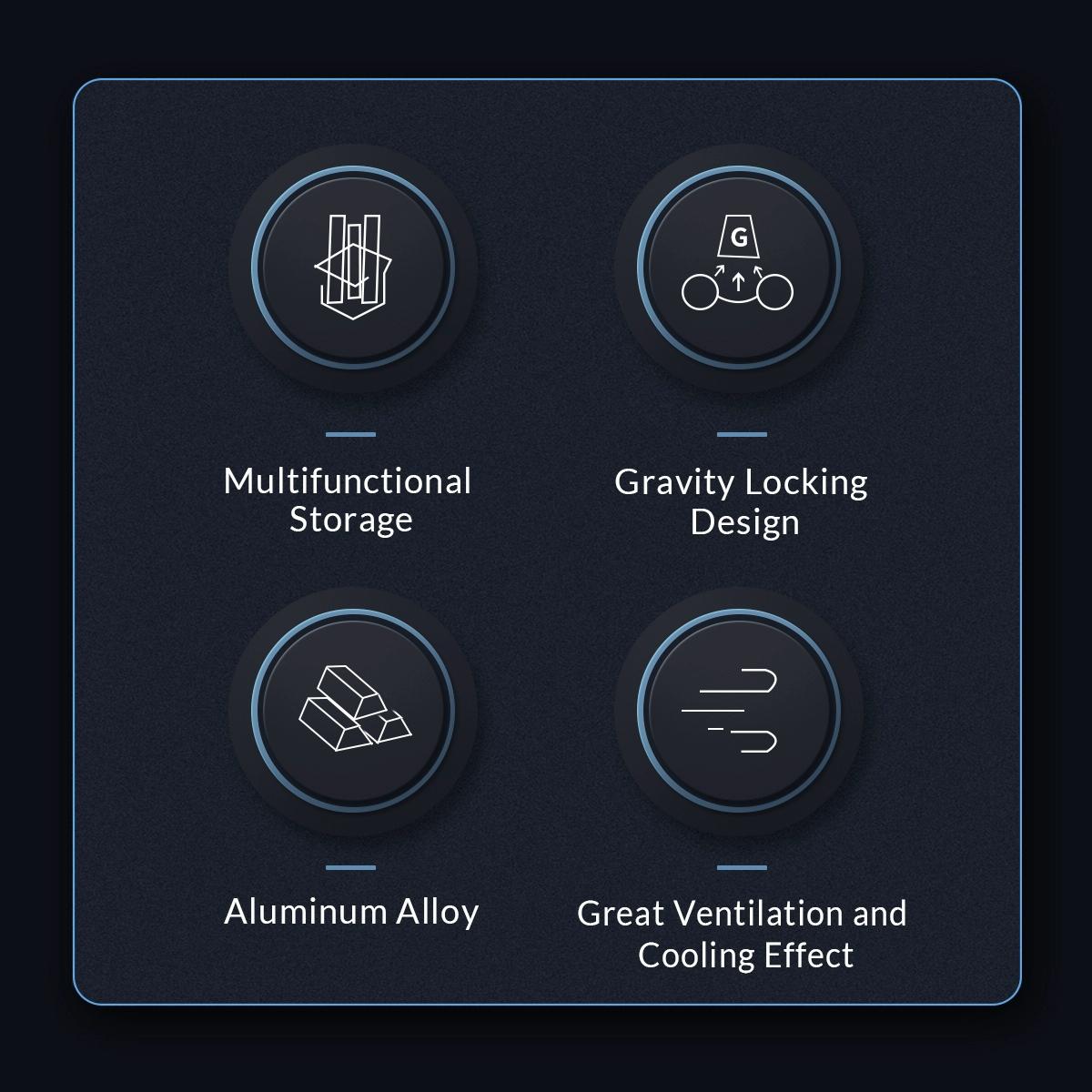 • Gravity locking design for automatic locking of laptop