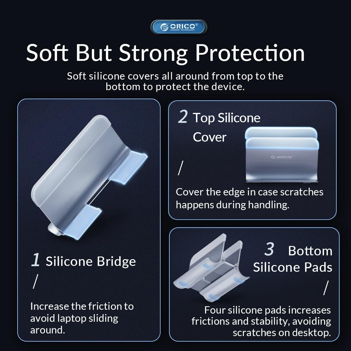 Space-saving Vertical Laptop Stand – Compact Design – Silver