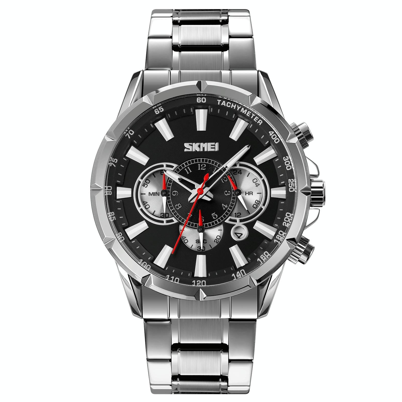 Stainless Steel Men Quartz Watch with Calendar – 9241 – Silver Black