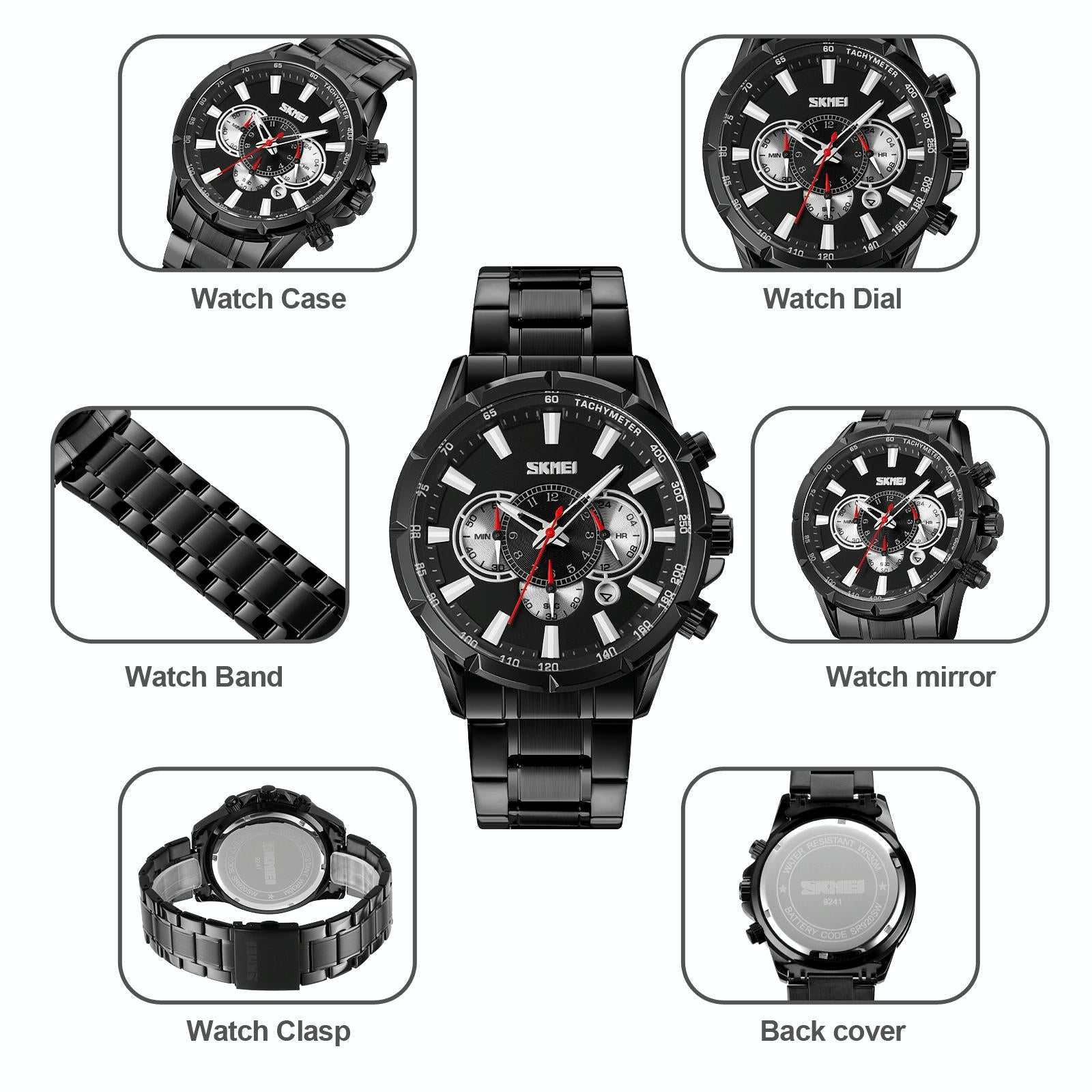 • 1 x 9241 Men Calendar Stainless Steel Strap Quartz Watch